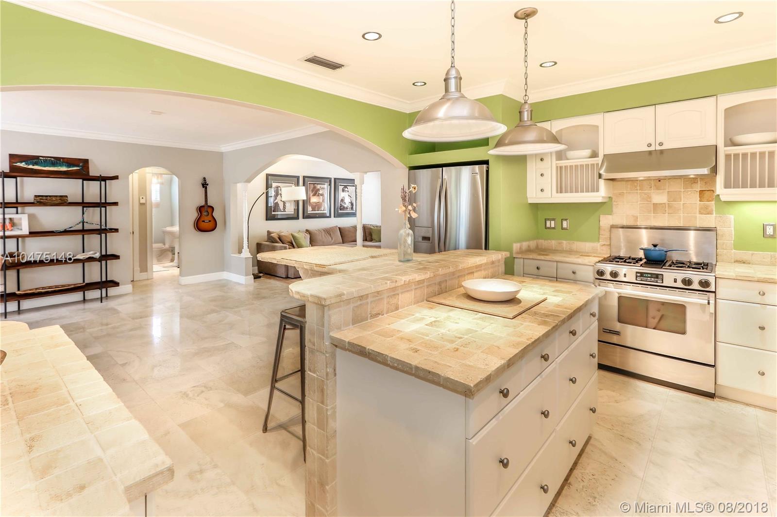 MOVE IN READY & PRICED TO SELL! Beautiful home with nice open layout, split floor plan, polished Travertine floors, big open Chefs Kitchen with Gas Stove a exterior exhaust, Tank-less Water Heater, Formal Dining rm, Den w/French doors leading out to a Tropical Backyard with open patio. Large Bedrooms, LED Lighting, Surround Sound audio int/ ext . Walking Distance to the Beach, Down Town & Restaurants.