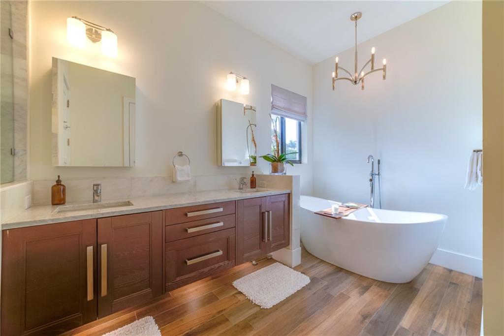 Built in 2016 by owner/builder, fully upgraded in East Boca, 5 min to parks, beach, restaurants and Mizner. 3,000 sq ft under roof, tile roof, impact windows & doors, high ceilings. Porcelain floors through including patio. Custom floor to ceiling kitchen cabinets, Bosch appliances. Marble baths, Grohe plumbing fixtures. Master features large walk in closet, freestanding tub, double sinks. 500 sq ft covered patio, full outdoor kitchen, dining/lounge area overlooking salt water pool and spa, cabana bath.