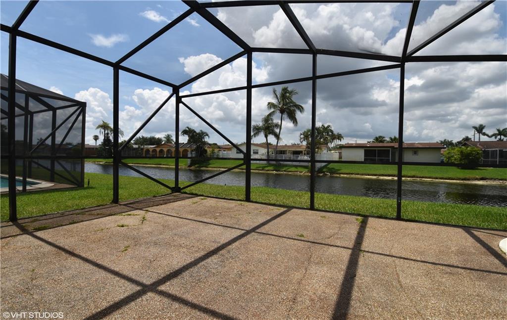 This charming 3 bedroom + large den, 2 bath, 2 car garage pool home is located in the Windward Isle section of Sunrise Golf Village. Freshly painted, spacious open floor plan, tile throughout living areas, screened in pool w/ extended patio & pretty water views. The eat in kitchen is huge & equipped w/ lots of cabinet space, a gas stove & a patio pass thru window, existing gas line to outdoor grill, hurricane shutters, roof installed 2006, a/c installed 2014. Great family home on a prime lot!
