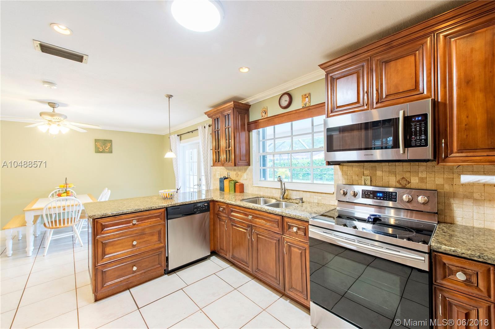 Wonderful Mirror Lake Estates home. Spacious 4 bedroom, 2 bath with a 2 car garage. Home has a dining room, Florida room and family room. The eat-in kitchen has stainless steel appliances, granite counter tops and a breakfast bar. Remodeled bathrooms. French doors leading out to screened in patio and pool. Home has a mix of hurricane impact windows & accordion shutters. The large family room with office is split from the four bedrooms and there is an interior laundry room near the two-car garage. Guest bath with pool/patio access. Home is wired for up to a 7500-watt generator. Complete home alarm ready for activation. Quiet, no-thru neighborhood surrounded by a canal. Great central Broward location, close to the major expressways, shopping and restaurants.