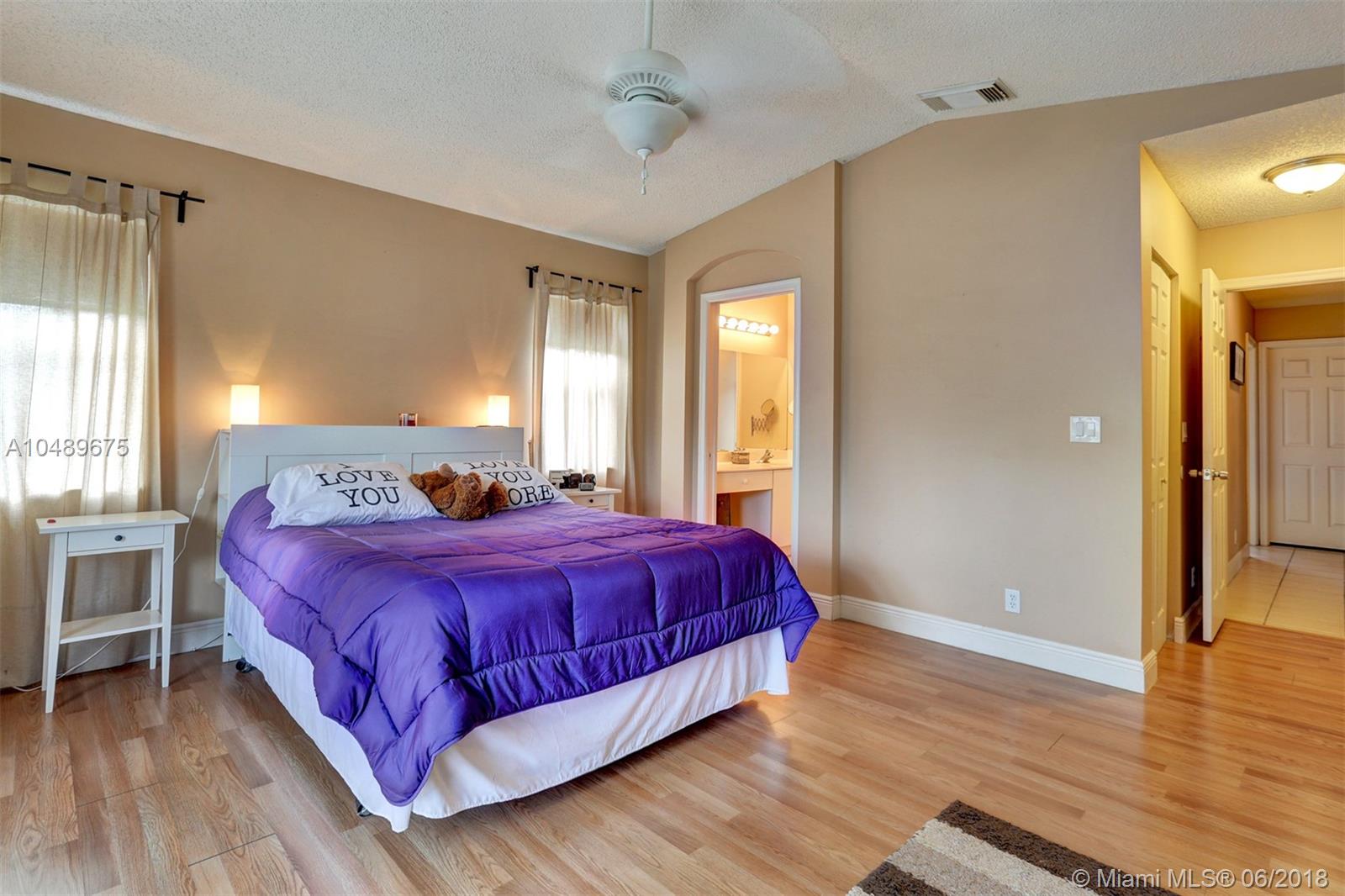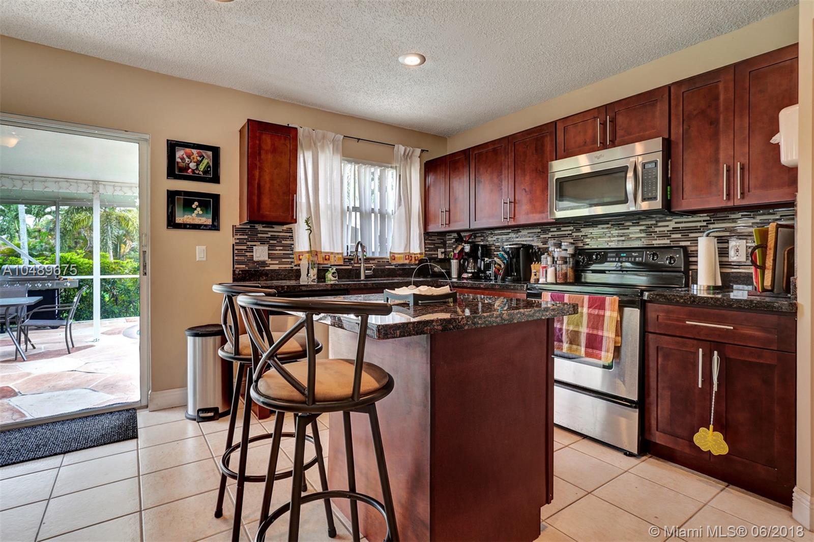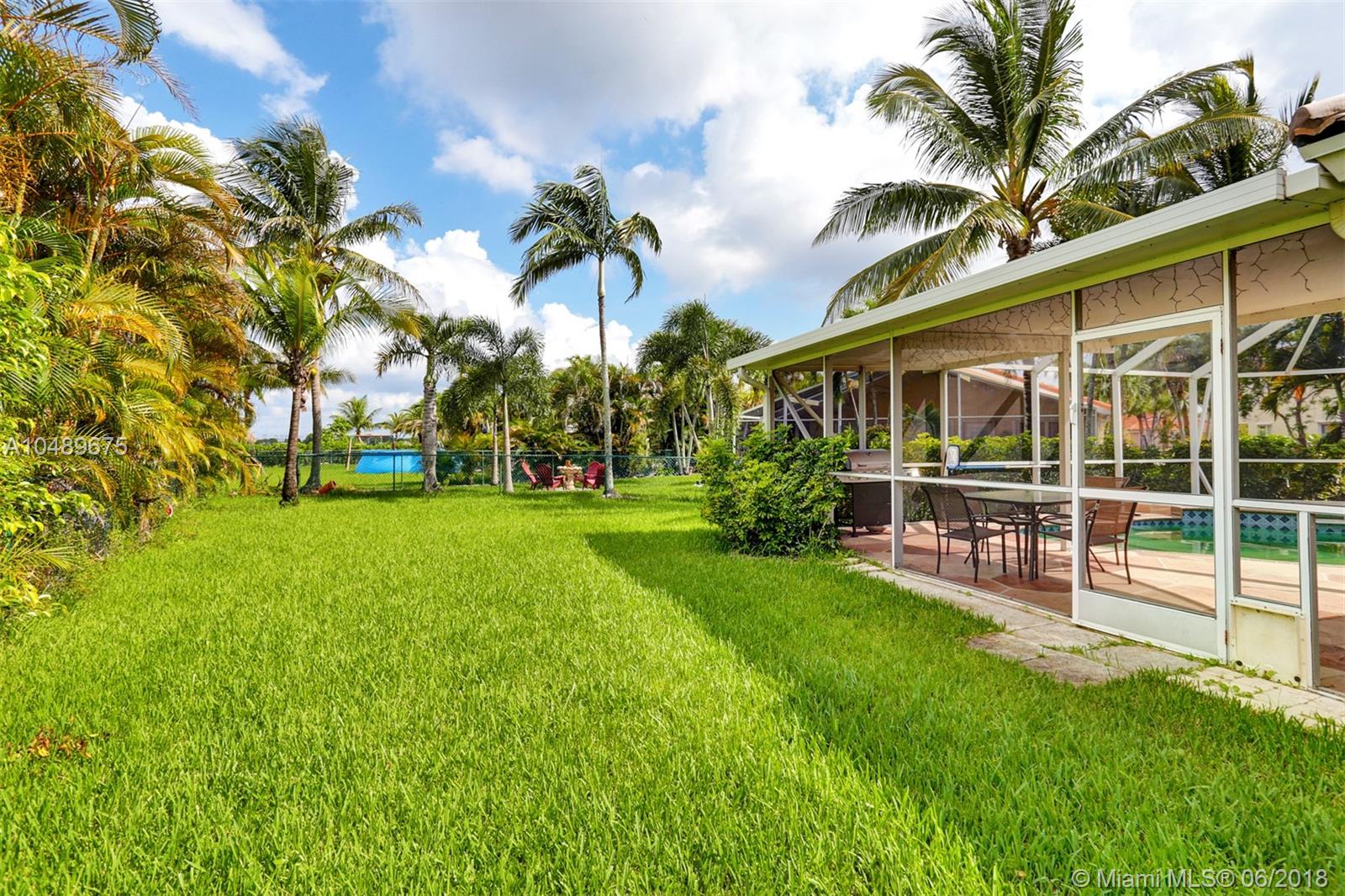 Back on the market! What a beauty! This one story pool home features a bright and open floor plan, tiled floors throughout the living area, gorgeous kitchen with a view of the pool area, a large island, Granite counter tops, Stainless Steel appliances and wood cabinets . Large Master bedroom with vaulted ceilings, large walk- in closet and access to the pool area. Private backyard with dome screen, beautiful pool with elevated Jacuzzi and a large yard area. Laundry room, AC recently replaced, hurricane panels, very low HOA fees. This home will not last!