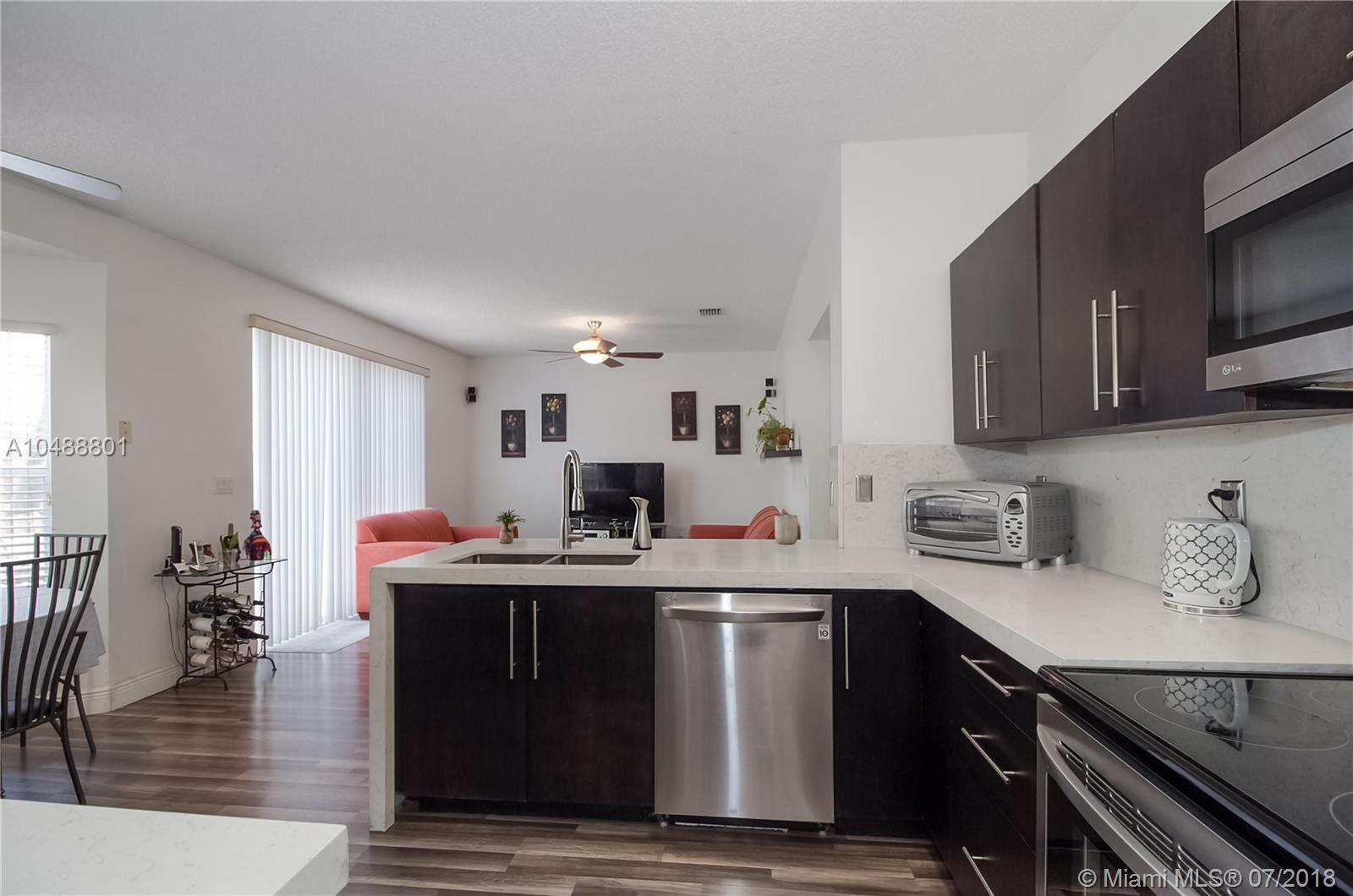 This gorgeous 4/3 in a gated community in Davie is ready to go!!! Renovated less than 3 years ago, property boasts wood kitchen cabinets with Carrara Quartz counter top and back splash, stainless steel appliances, laminated floors in first and second floor, accordion and panel shutters, gutters and paved patio. Very spacious floor plan that includes living, dining, 1 bedroom and 1 bath, breakfast area and family room on the first floor and 3 bedrooms/2 baths on the second floor. BB-Q Area, for memorable family gatherings. Small family oriented community. Good school system. Centrally located with 5 minutes access to I-595, I-75 and Sawgrass expressway. 20 minutes away from Ft Lauderdale airport and 25 minutes to FLL beaches. Low association fee. As-Is.