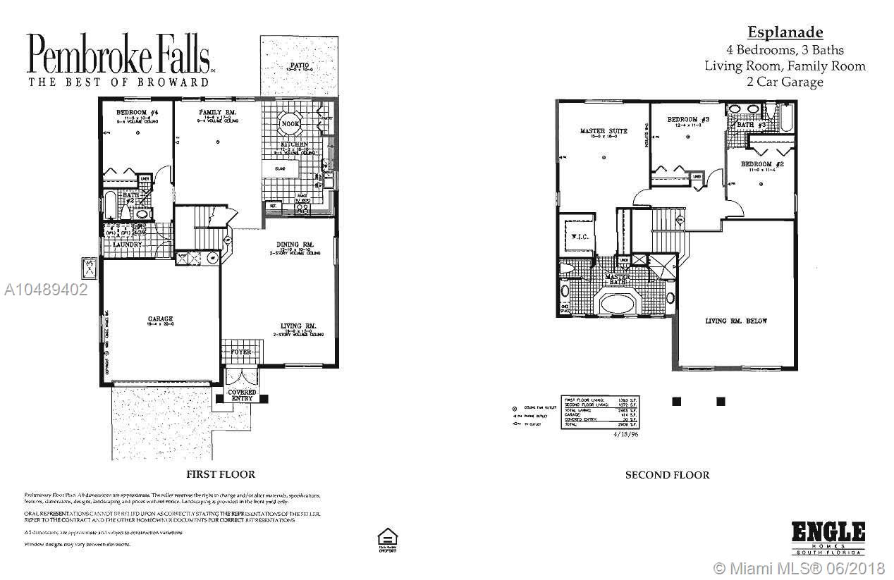 Spaciously Appointed, 4 Bedroom, 3 Bath, Esplanade Model in Prestigious Pembroke Falls – Bimini Bay. Featuring: Large Open Kitchen, Maple Cabinetry, Corian Countertops, Island, Pantry, Enormous 2nd FLR Master Suite, Walk-in Closet, His & Hers’ Vanities, Free Standing Soaking Tub, Sizable 1st FLR GUEST SUITE w/Adjacent FULL BATH, Utility Room, Freshly Painted Interior, Soaring Ceilings, NEW ACCORDION SHUTTERS INSTALLED PRIOR TO CLOSING, NEWER A/C, Extended Patio, Expansive Yard, Room for a Pool….. THE PERFECT FAMILY HOME! Residents Enjoy: Resort Style Club House, Pool, Spa, Gym, Tennis, Basketball, Ballroom, Tot-Lots, 4–24hr Manned Secure Entrances. HOA includes: Fiber Optic HD Cable, Wireless Internet & Alarm Monitoring. Convenient to Shopping, Dining, Entertainment & Schools.