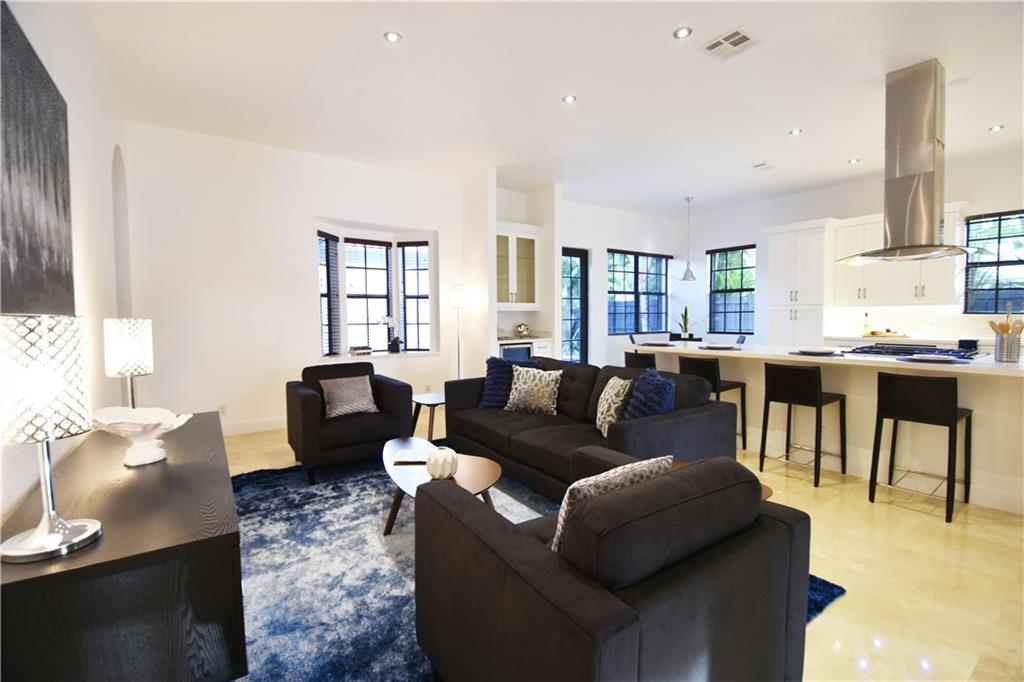 Beautifully appointed 5 bedroom 4 bath modern home ready for your personal touches. Corner lot with garage in rear and plenty of guest parking. New large open kitchen with natural gas cooking, stainless steel appliances. Large master suite and 2 additional bedrooms first floor. 2 en-suite guest rooms on second level. Saturnia marble floors, beautiful wood staircase. Central vac, Murano glass chandeliers, new washer & dryer, wine cooler,pantry. All Custom Closets, LED lighting,free form large private pool.