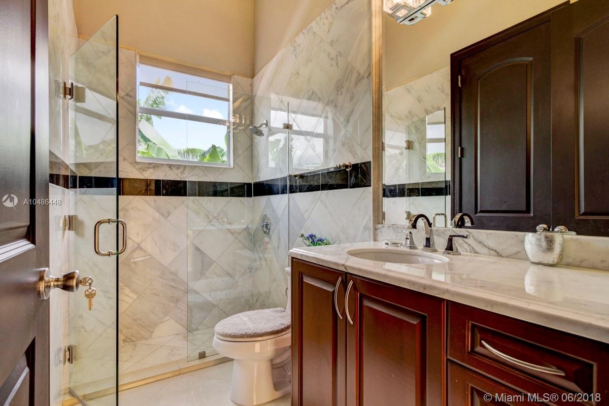 Waterfront pool home, one story Mediterranean style on huge 75x150ft lot(11250SF). Soaring 12 ft ceilings, hurricane impact windows and 8ft doors. Private master suite, 2 walk-in closets, dual sinks, separate spa tub and shower for 2. Five true bedrooms,4 full baths, 2 car garage. Open kitchen and massive great room with pool and water views. Custom pool with sun-shelf and waterfall Jacuzzi. Marble patio and mature landscaping, tiki style covered BBQ create an island paradise feel. Dock space up to 75 ft. direct bay access in seconds with one fixed bridge at 13 ft clearance. Ocean access in 15 mins. Located in the 24 hr guard gated islands of Keystone Point.