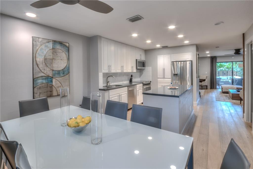 STUNNING corner residence completely updated. 2/2.5 plus office & laundry room. Beautiful high-end solid wood flooring & modern design throughout. Entertain in your brand new open kitchen w/quartz countertops & modern white cabinetry centered between large dining & living area. Living room opens up to private spacious patio w/jacuzzi. 2nd story is split floorplan w/laundry room. Master has walk-in closet while guest bedroom has separate office attached. Residence offers clubroom, pool, & 2 parking spots.