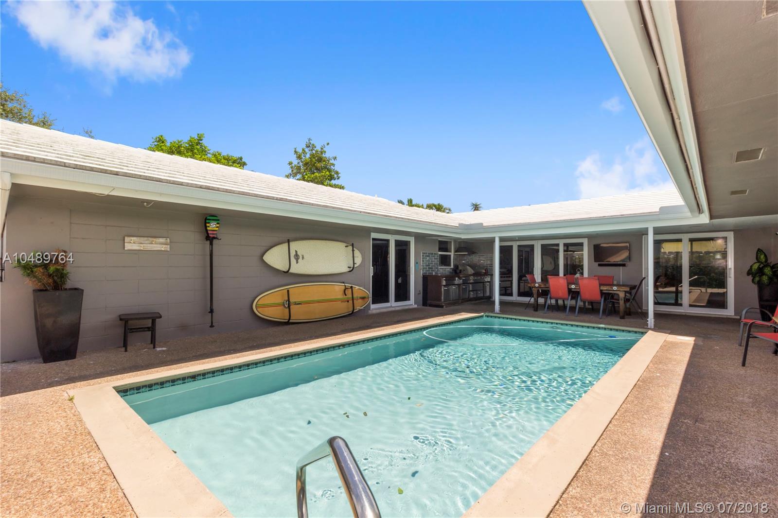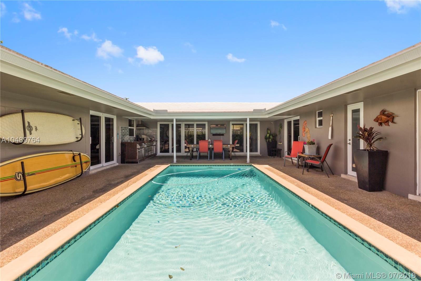The best Fort Lauderdale waterfront opportunity on the market! Spectacular Coral Ridge Isles 4/2, Bright, Clean & Completely Remodeled Home, including New Hurricane Impact Windows / Doors & Garage. Porcelain Plank Wood-Look Flooring throughout, Gorgeous Kitchen w/ New Cabinets, Butcher Block Counters & Farmhouse Sink, all new LG appliances, including Washer / Dryer, Newer AC system & Water Heater, Spectacular Top of the Line Outdoor Kitchen / BBQ, outdoor Security Camera, upgraded Electric Panels, new LED Lighting. Courtyard Style Home - Perfect to Watch the Kids from almost every room, or Entertaining. 75 Feet on Deep Water, Ocean Access, Boat to the Restaurants. Fantastic Floranada School District, but also close to Pine Crest School & the Beach.