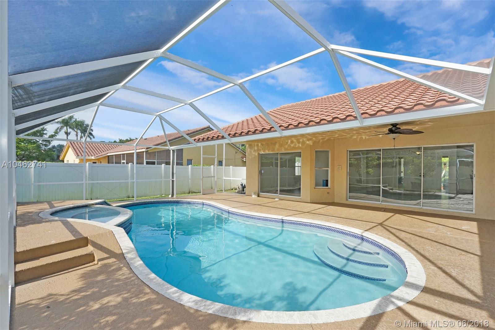 Welcome Home to this stunning, rarely available 5 bedroom, 3 bathroom, 3 car garage pool home in the beautiful community of Brookside! This lovely home shows like a model & features a newer roof replaced in 2013, newer A/C unit, gorgeous cabinetry with granite counters in kitchen and bathrooms, stainless steel appliances, brand new high-end laminate wood flooring, a triple-split floor plan, soaring vaulted ceilings and much more! Cool off outside by the pool, or soak in the attached spa & enjoy the outdoors in your newly painted and re-screened pool enclosure. Enjoy a very low HOA fee and great schools nearby! Located in the heart of Coral Springs, Brookside is close to great shopping & dinning as well as highways. Call to schedule your showing today!