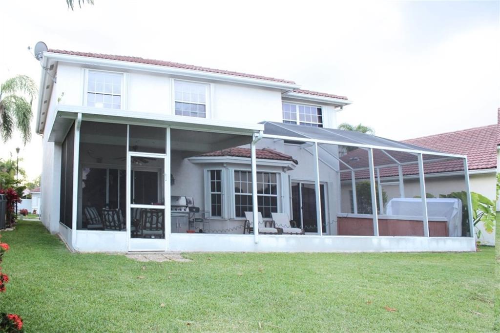 Immaculate overseeing a beautiful lake!! 4/2.5 home Screened patio, with outdoor SPA Jacuzzi. Accordion shutters, impact resistant doors & windows. Oversized Master Bedroom. Wood floors throughout w/SS appliances on a designer Italian kitchen. Gas stove/Gas Water Heater. Basic Comcast Cable included in HOA fee. Master suite w/5 closets, 2 sinks & separate roman tub/Jacuzzi & shower. Multiple rooms overlook big lake including master. Bonaventure Town Center Club w/pools, gym, bowling, tennis, racquetball.
