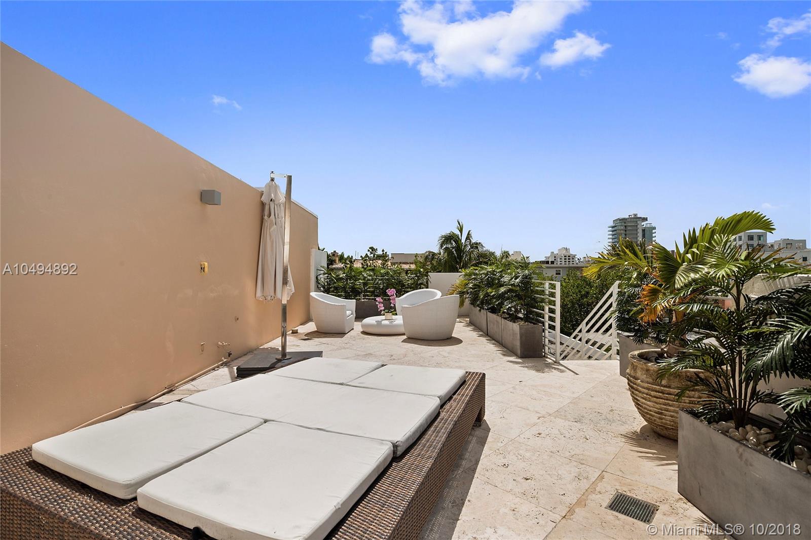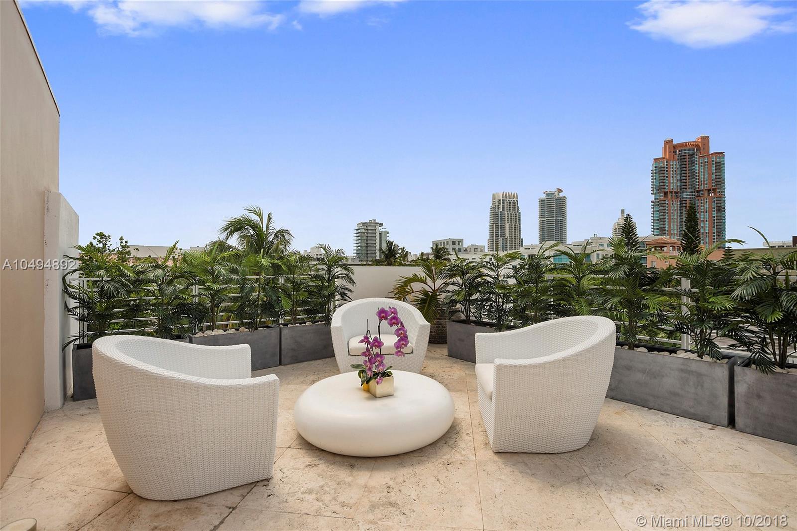 SOUTH OF FIFTH Modern design multi-level Townhome with exceptional ROOF TOP TERRACE, perfect to relax or entertain. This fabulous architecture with 3 bedrooms, 2-1/2 baths is the largest in its development, featuring 12-ft plus ceilings, limestone floors, glass walls, European kitchen and covered two- car garage with storage. This secure and upscale private retreat is located three blocks from the ocean and steps away from world-class restaurants, shops, South Pointe park & marina. The ultimate GEM in South Beach living!