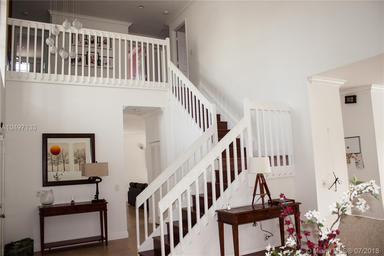 Welcome Home!!! This beautiful home is located on a cul-de-sac in a gated community with 5 beds, 3.5 baths, and 2 car garage. Home features real wood floor throughout the second floor, large tiles on first floor, plantation shutters on all bedroom windows, accordion shutters on all 2nd floor windows, low maintenance salt water pool, and a great fenced in area to entertain friends & family. Home comes with all high end appliances, purchased in 2016. Conveniently located and zoned for 'A' rated schools!