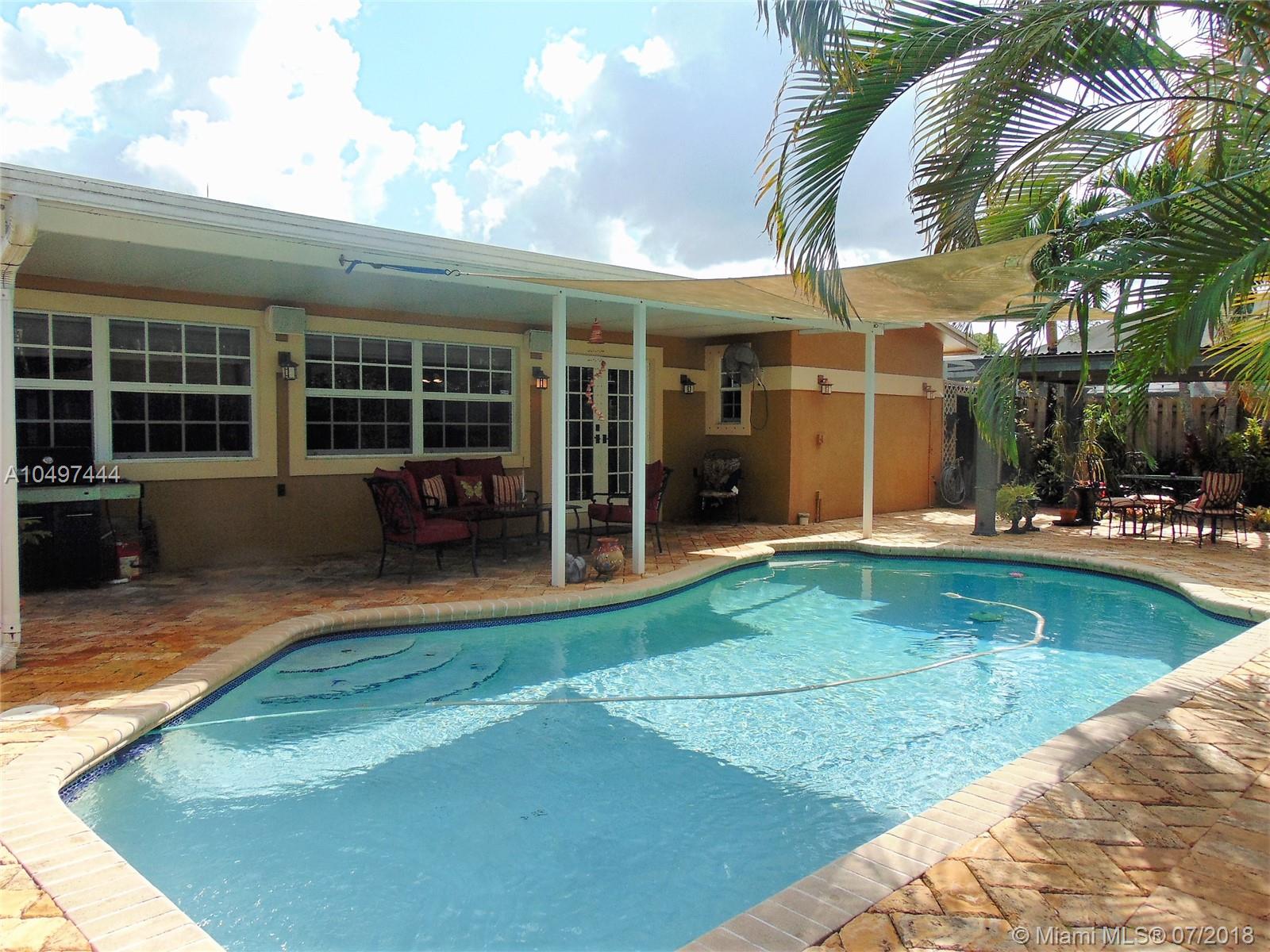 Come check out and make an offer on this updated and well maintained West Sunrise Pool Home. Pavers and low maintenance flowering yard invite you in. Interior features 3 bedrooms, 2 baths with quality laminate flooring throughout. The large kitchen has plenty of room for storage and prep along with stainless steel gas appliances. Choice of dining area from the eat in kitchen, dining room or patio. Updated lighting with dimmers. The extended backyard is great for entertaining in the free form pool and covered areas. Natural gas grill will be left for your enjoyment. Pool is easy to care for with salt chlorination system. Peace of mind in storm season with updated windows (impact+accordion shutters), city supplied natural gas and full home back up generator. No HOA. Rear access to Plantation