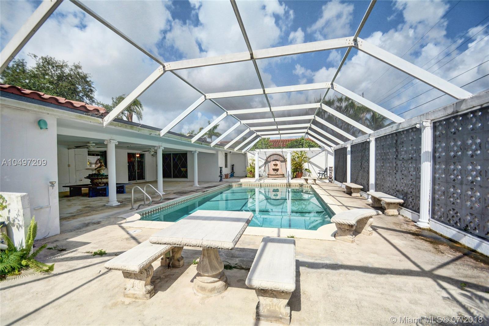 Incredible opportunity to own a large impressive pool home on one of the most prestigious streets in Hollywood Hills. Spacious bright living area terrazzo floors overlooking gigantic pool area, large open eat-in kitchen with corium counter tops, kitchen is very functional excellent for large families. 4th bedroom is a converted room. House has a massive family room that could be converted into a 5th bedroom or new master suite. The pool area is breathtaking! 40x20 pool with Cabana bath & gigantic covered outdoor patio with screening, perfect for entertaining. Large fenced side yard that is bigger than most homes backyards. Great parking set up for large boat or RV. Close to A Rated Public. schools Near restaurants, shopping, places of worship, 10 mins from beach! Easy access to Highways.