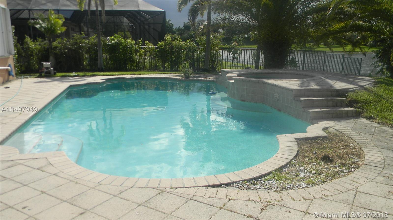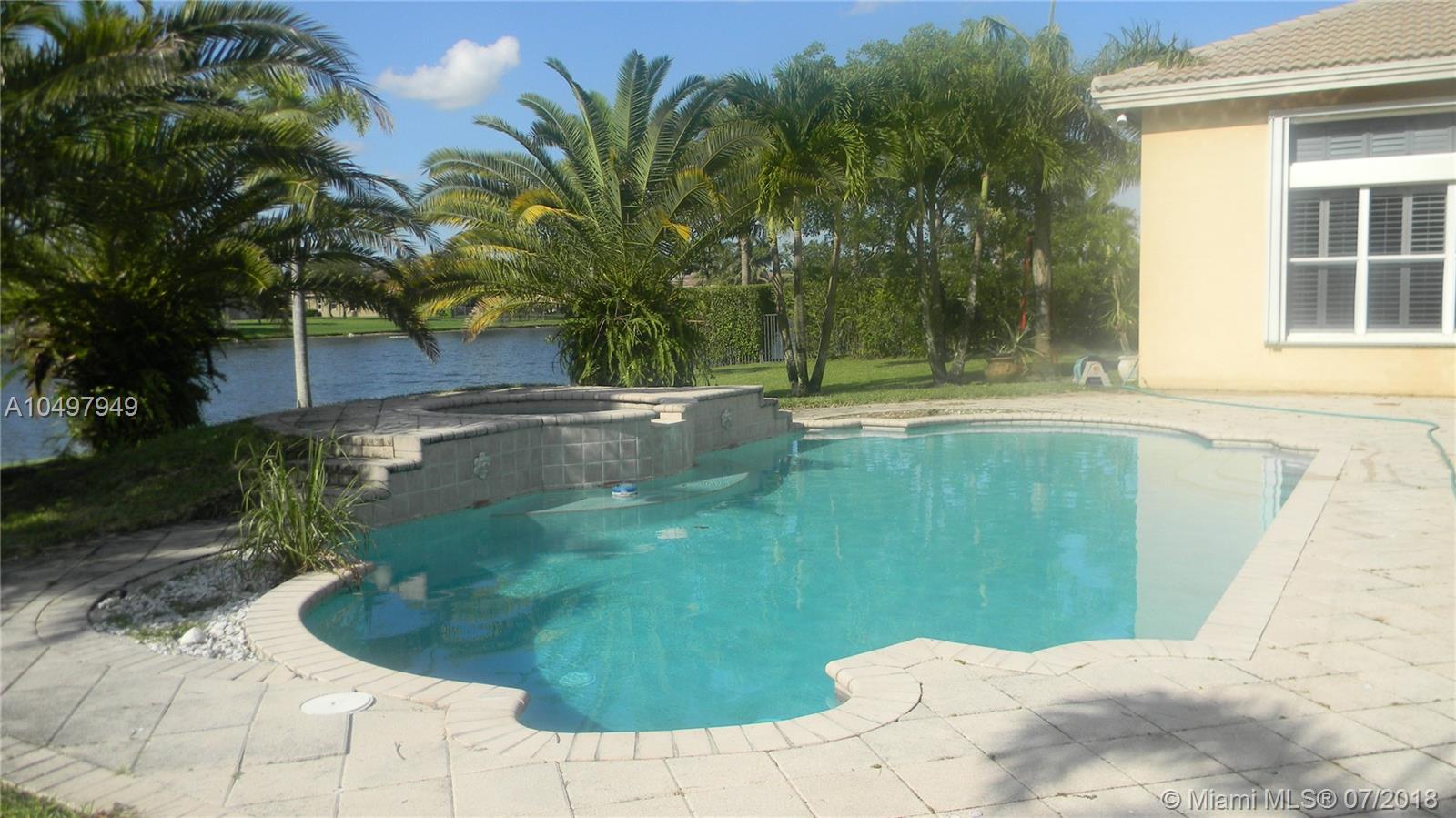 Outstanding opportunity to own a gorgeous lakefront house in the highly desirable Riverstone community in Davie, Fl. This home with 6 bedrooms, 4 bath & 3 car garage one-story & has upgrades galore and features tile floors throughout, real wood kitchen cabinets with midnight black granite counter tops, stainless still appliances, high ceilings, master bathrooms, customized walk-in closets in master bedroom, beautiful pool and pool deck overlooking the lake that makes a perfect setting to entertain family and friends. Close to I-75, beautiful equestrian parks, shopping malls and restaurants.