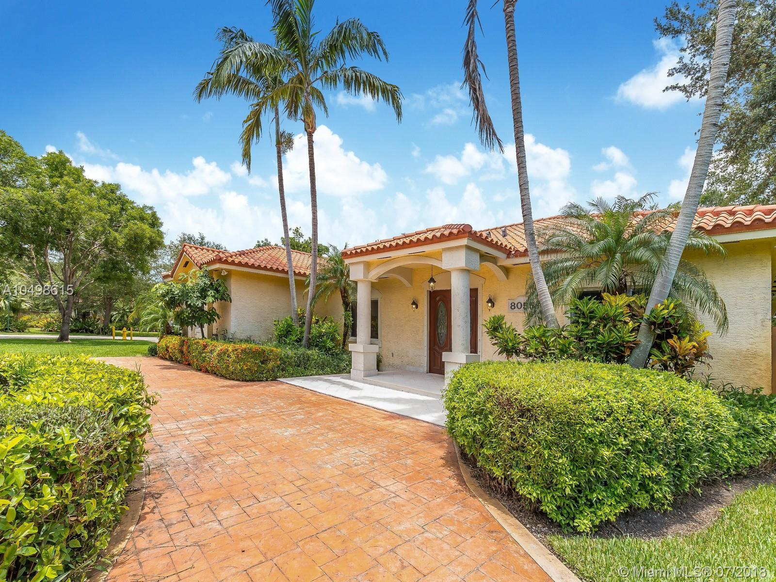 Introducing a radiant and inviting 2004-built, one-story residence on a beautifully landscaped corner lot! The home enjoys 2 circular driveways, ideal for multiple car owners & also a great perk for those who entertain often. Once inside the foyer and beyond, you will find soaring ceilings, marble floors, tall arches and custom art niches. The numerous windows and doors provide natural light and afford wonderful views to the gardens, covered patio and the crystal blue heated pool and its waterfall. The layout consists of a luxurious master suite and 2 additional bedrooms on the east wing and a 4th bedroom with en-suite bath on the west side. In summary, it is a 3/2 on the east wing and 1/1 + guest bath on the west + laundry room.