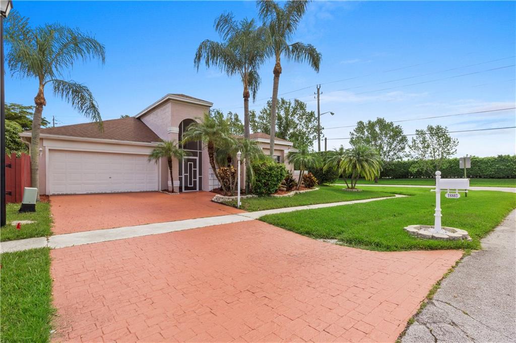 Beautiful charming corner lot property at Boca Landings community. This well maintained home features updated kitchen with stainless steel appliances. formal dining room, formal living room, family room, faux finish walls, tile floors, New A/C, remodeled bathrooms, 3 bedroom, 2 bath, and 2 car garage, enclosed screen patio. Enjoy community resort-style pool, basketball, and tennis courts. Great areas for jogging and biking. Near by shopping centers and highways. Great schools!