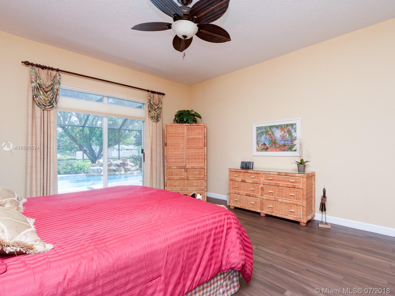 This beauty in Plantation Acres is located on a private cul-de-sac tree-lined street. Enjoy easy living, plenty of natural lighting, an open floor plan 5 bedrooms and 2.5 baths. The original owners carefully selected and crafted every quality detail. Stainless steel appliances, new Mohawk porcelain tile in all bedrooms, updated master bath, with plantation shutters, remodeled cabana bath, and tile flooring throughout the main living area. French doors open to luxurious salt chlorinator pool with rock waterfall, setting the stage for year round entertaining. Large 2 car garage with extra attic storage and pull down stairs. Brick pavers in driveway & pool area. Enjoy the sunset in absolute peace and tranquility. Priced to sell. Schedule your private showing! So much more to see.