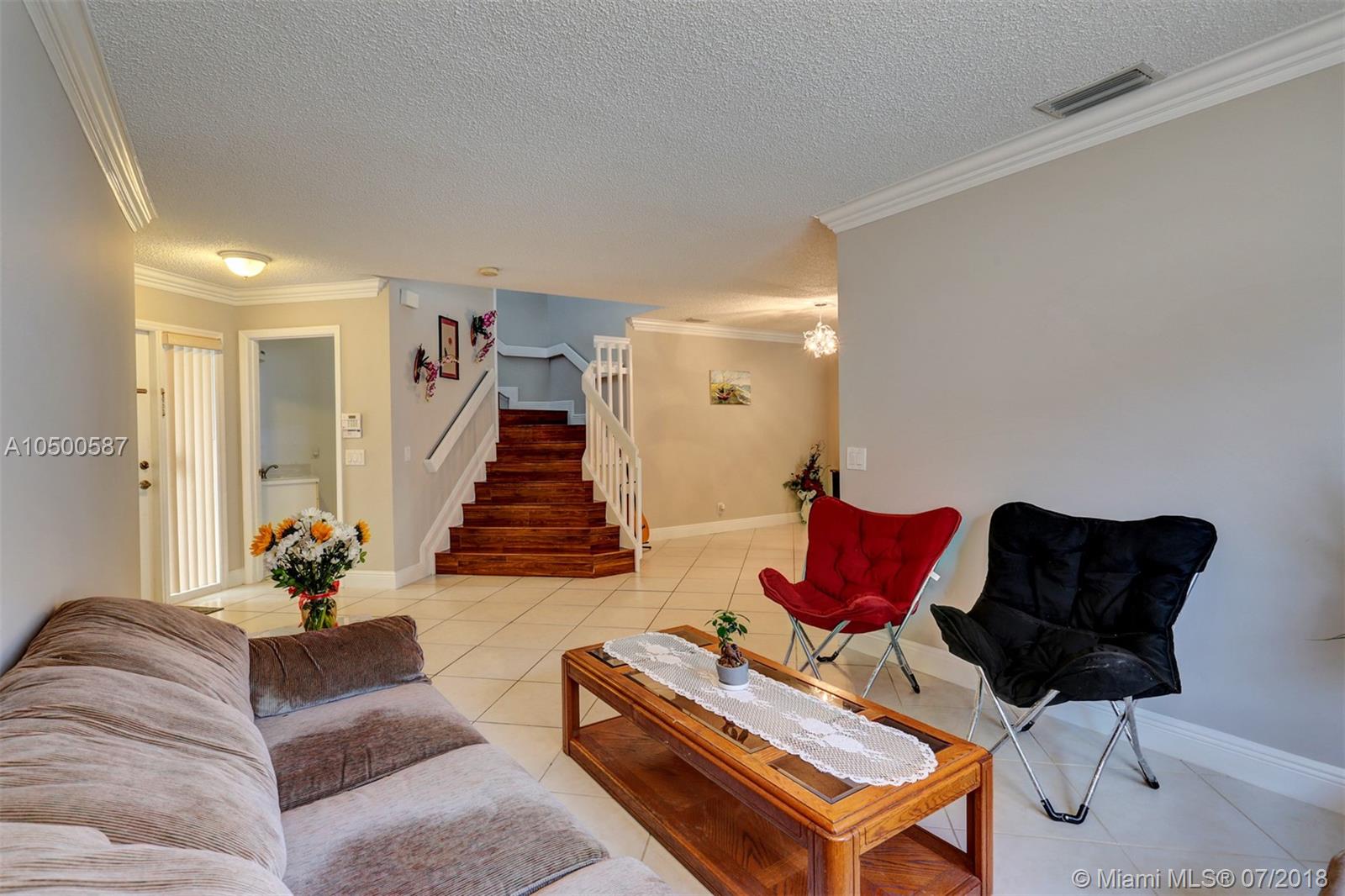 Wonderful home in Turtle Run. This 3 bedroom property features a bright and open floor plan with tile throughout the 1st floor. Gorgeous remodeled kitchen with Granite tops, Stainless Steel appliances and wood cabinets. Eat-in kitchen leading to a large Family Room. Master Bedroom downstairs with sliding doors to the back yard. Large Master bathroom, and one huge walk-in closet! Beautiful higher end laminate flooring throughout the entire 2nd floor, generous sized bedrooms, laundry area upstairs as well. Great size fenced back yard. Hurricane panels downstairs and Accordion upstairs. Low HOA , amenities include pool, security gate and patrol. Greta home and priced to sell!