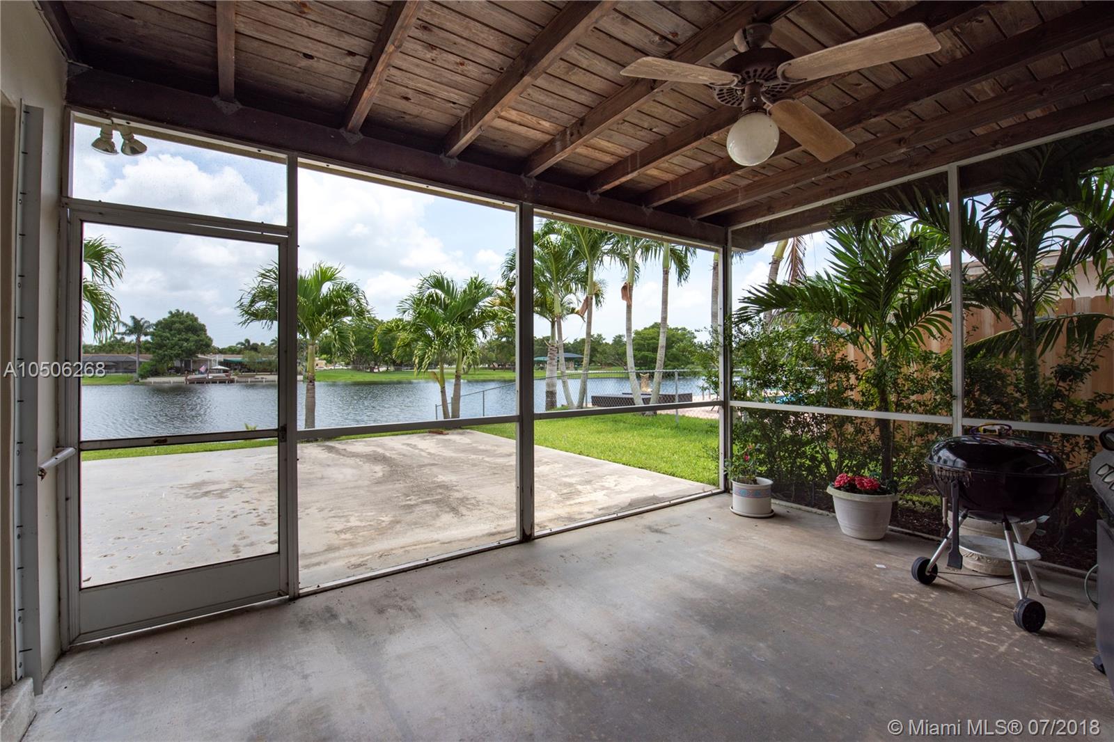 Pembroke Lakes Lakefront home 4/2 with oversized 2 car garage. Location! Location! No HOA. Original owners. Split bedroom floor plan, eat-in kitchen, 25X12 family room and 19X15 living room with dining room located off the kitchen. Roofed Patio is off the family room and an additional outside 20x20 patio All overlooking 100 feet of serene lakefront. Great exposure for afternoon barbecues backyard facing the east (never have to fill tanks for your grill the home has natural gas). Cabana bath plenty of room for a pool and still have room for the kids to play the lot is over 11,000 square feet. Needs update