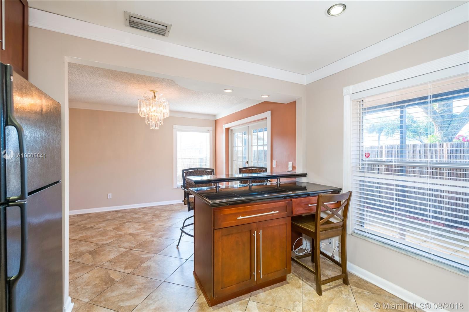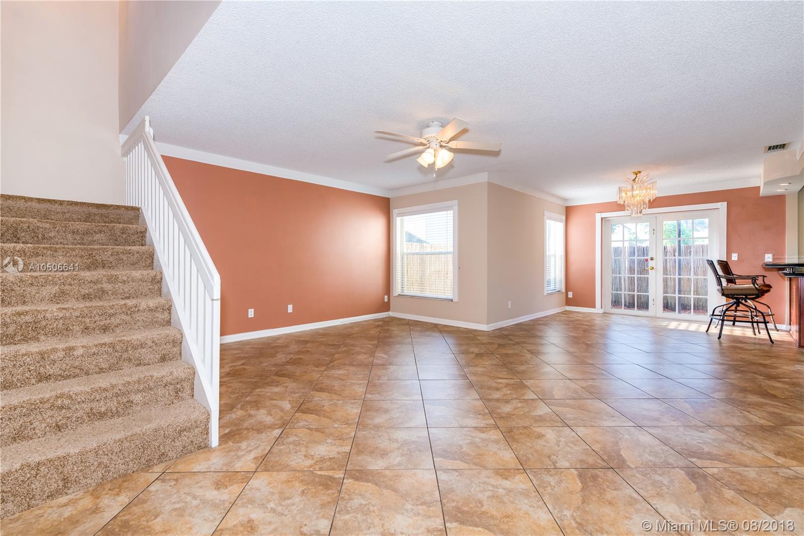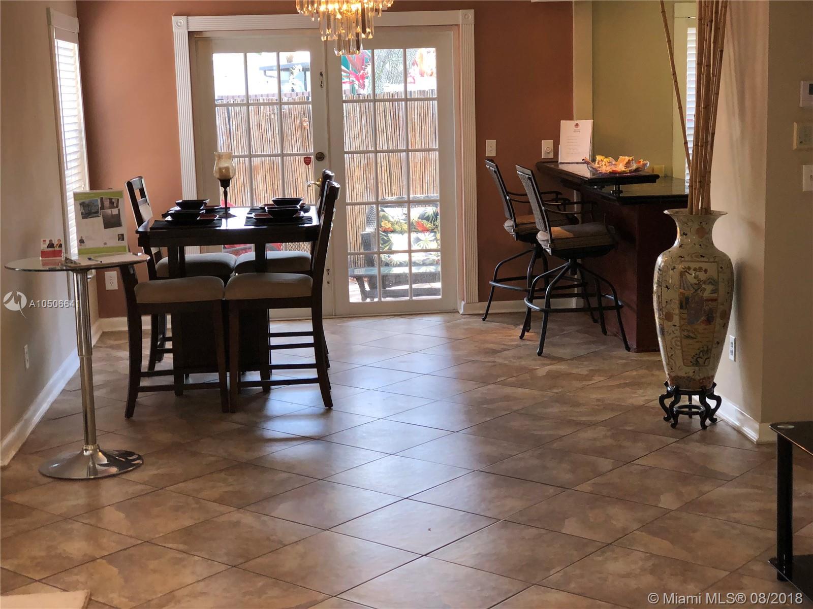 *BEDROOMS AND MASTER BATH HAVE BEEN UPDATED, MODERN AND SPACIOUS CORNER TOWNHOUSE with 3 bedrooms, 2 1/2 baths Spacious floorplan with large living area neutral diagonal tile, Dark wood kitchen with glass, tile backsplash, granite countertop & breakfast bar/desk area. Vaulted ceiling in MBR. New carpet upstairs. French doors lead of to a private fenced patio. Extra storage under the stairs. 1 car attached garage and 2 park spots. No rental restrictions. Excellent investment opportunity. Near community pool. * HURRICANE SHUTTERS * 2 PETS ALLOWED NO WEIGHT LIMIT *"AHS Home Warranty Included"