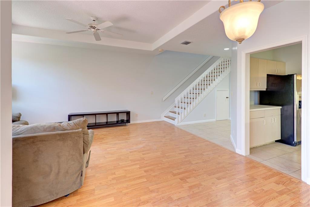 WOW!!! 3 bedroom, 2.5 bathroom townhome with 1 car garage in a gated community. Freshly painted top to bottom. NO CARPET, laminate and tile throughout. Bathrooms have all been remodeled. Large bedrooms, master has walk in closet. Screened in patio overlooking private back yard. HOA Fee..$325/month.