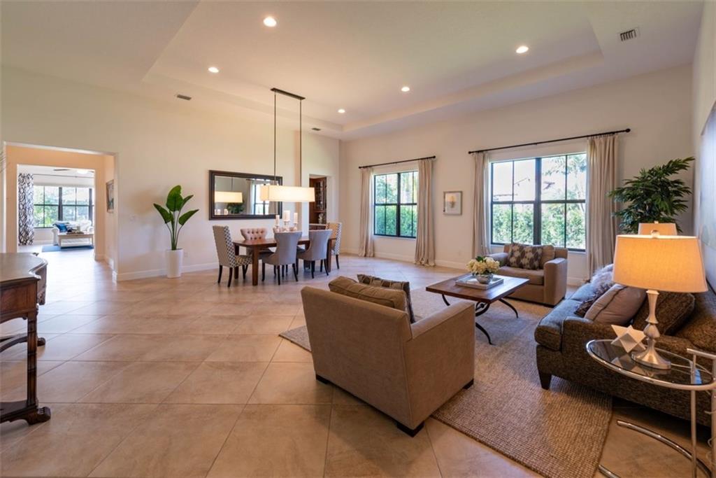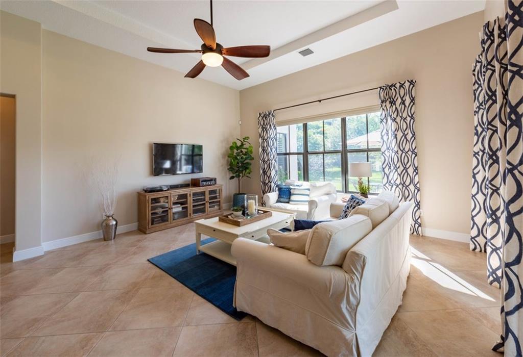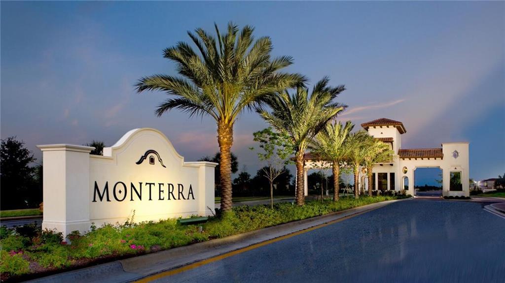 REDUCED! This Relocation Estate Home is Spacious and Immaculately Upgraded. Bright and Airy 4 BR 3 Bath - 3-Car Garage One-Story BRISBANE Model on Oversized Lushly Landscaped Corner Lot in Guard Gated "Monterra". 12' Ceilings & 8' Doors with Open Floor Plan. State of the Art Kitchen has Stainless Appliances, Granite Counters, Center Isl & Pantry, Breakfast Nook & Snack Counter. Extended Paver Cov'd Patio. Resort Style Amenities: Tennis, Basketball, Fitness, Tot Lot & Dog Park. A+ Rated Schools. Minutes to Airport & Major Hwys.$110 HOA/year - HOA/CDD Fees Incl'd in Taxes.