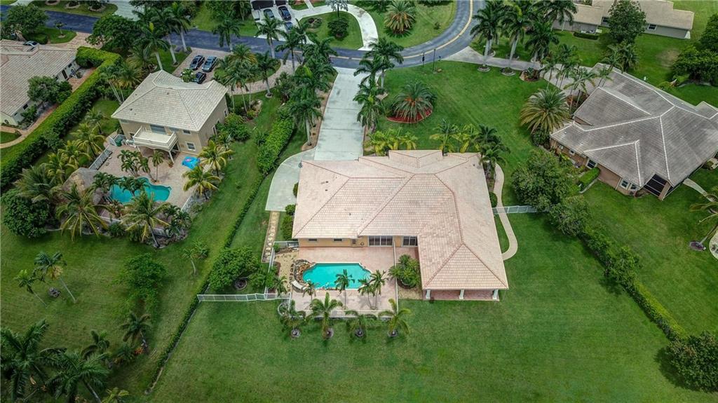 Gorgeous Estate Home in Guard Gated Community of Emerald Springs! Enormous 1200+ sq ft overhang/ porch area great for entertaining. Well appointed on 1+ acre/47000+ sq ft pie shaped lot! Brand New Renovated kitchen with white shaker door wood cabinetry, waterfall granite counter tops and stainless steel appliances. Accordion Shutters & Impact Garage Doors. Split floor plan pool home with 5 bed 4 bath plus Office. Oversized driveway lined with beautiful Royal Palms. Passive Park approved to be built on vacant land behind the home! Homes in the same neighborhood selling for over 1 Million!!