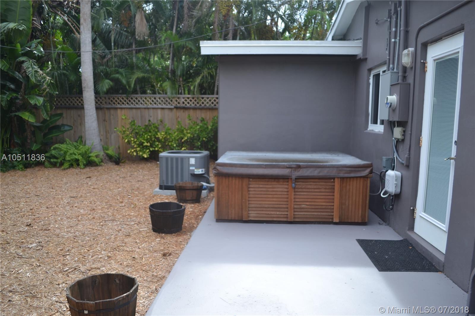 Look no further; you'll fall in love with this cozy, fully-upgraded, turnkey, 2/1.5 surrounded by an array of foliage and 8' wooden fence for complete privacy. This house has terrazzo floors throughout and high gloss lacquer kitchen cabinets, quartz counter tops, with a bonus on an outside hot tub and private outside shower with toilet; 3 year old A/C unit, 2 year old tankless water heater, separate utility room with full washer and dryer, high-impact windows and doors, and lots more. The tastefully designed garden surrounds the entire house and requires very little maintenance. A perfect starter home with lots of room for a pool if desired. Don't miss out, schedule your showing today. Seller is very motivated, very open to negotiations.