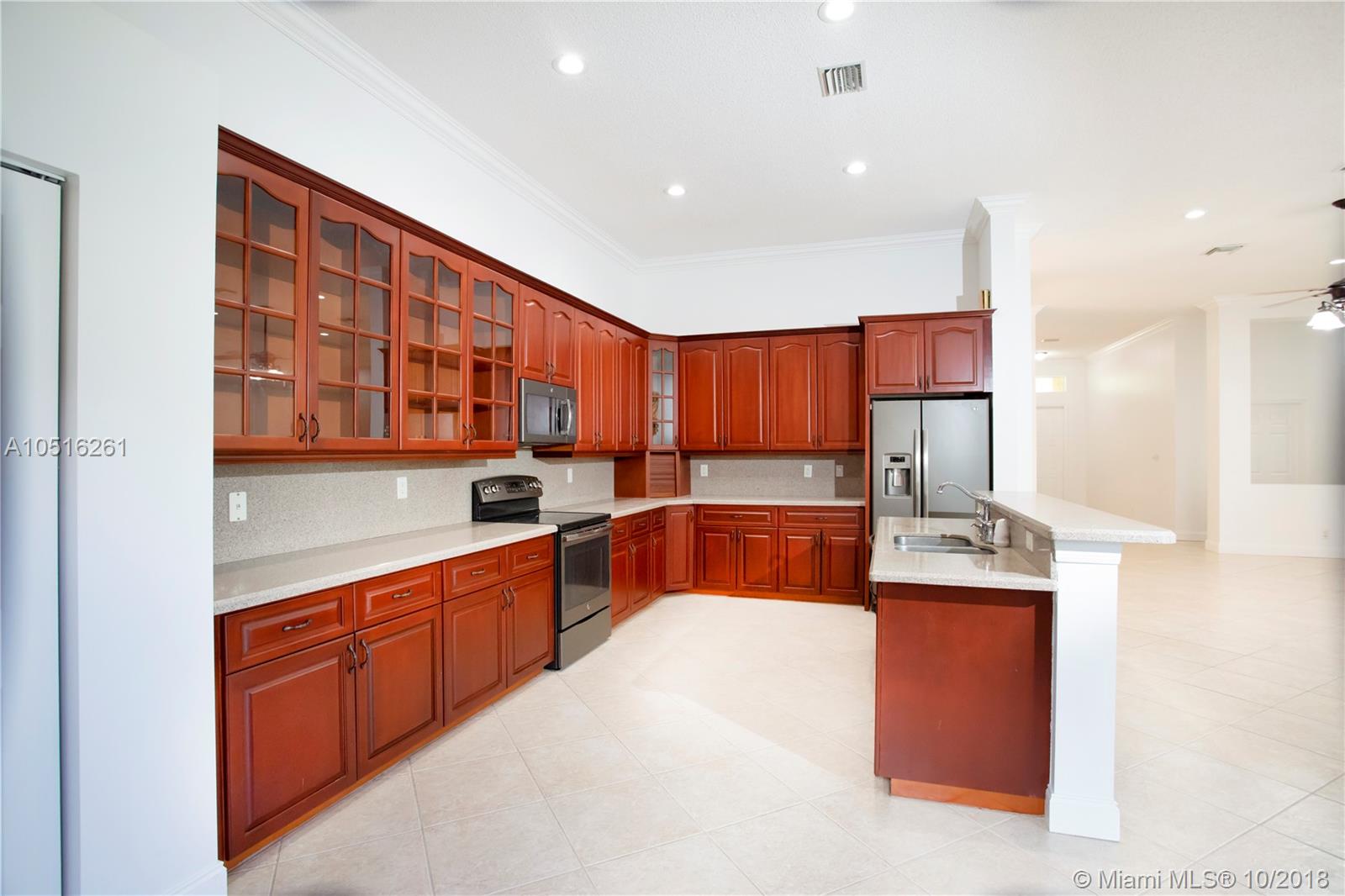 Beautiful 4 bed 2.5 bath located in the gated community of Savanna with A++. schools! The house has soaring ceilings, very large kitchen with plenty of cabinets, and gray stainless steel appliances. Formal living and dining area, open layout and nice patio area. Master has 2 massive walk in closets, renovated bath and plenty of room. New flooring in all bedrooms, and fresh paint. Other features include hurricane shutters, bright sunny corner lot, and mango and açaí trees on the property.