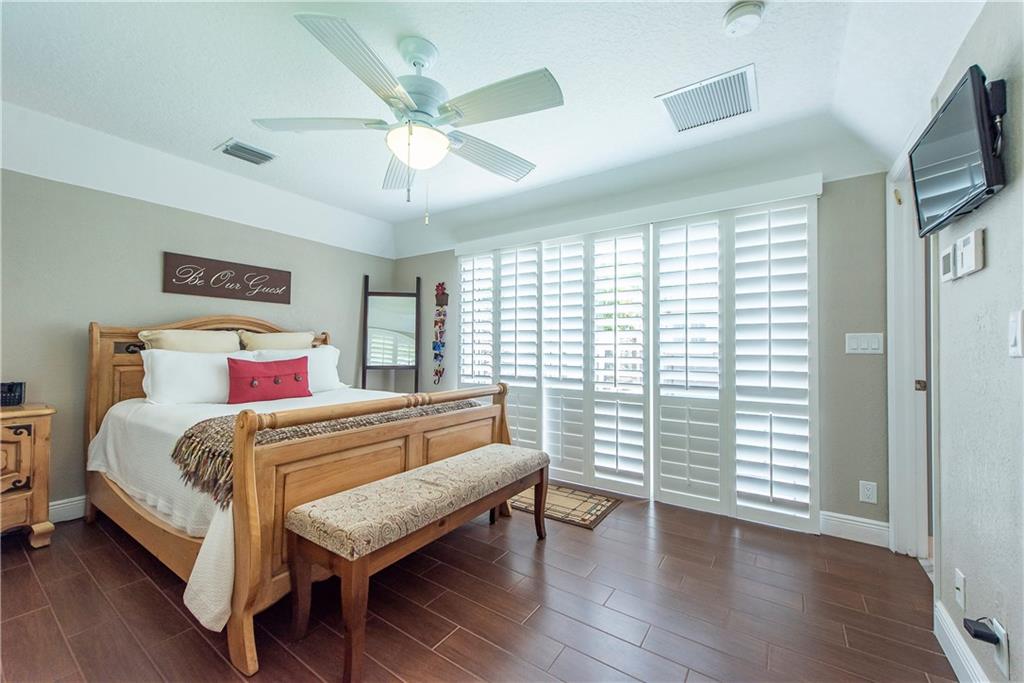 WOW! Step into your dream home! This desirable courtyard home is FILLED with upgrades, including: wood-look tile floors; Plantation shutters on all windows/doors; gorgeous kitchen w/stainless steel appliances, wood cabinets & quartz countertops; crown molding; designer light fixtures; both a/c's less than 2 years old; new washer/dryer; guest house w/built-in coffee bar & frig; stacked stone on exterior; beautiful deck in fenced backyard; paver driveway; freshly painted exterior & so much more! Won't last!