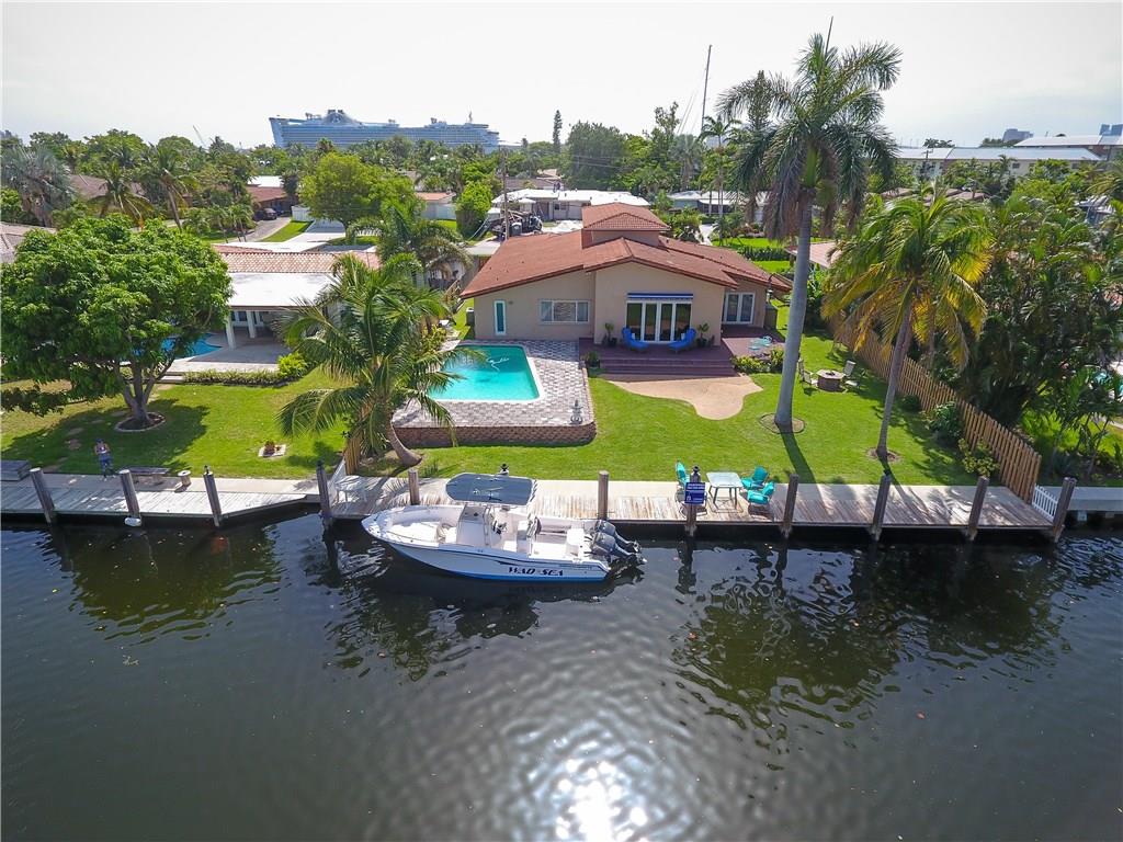 GORGEOUS WATERFRONT FAMILY HOME ONLY MINS TO THE OCEAN BY BOAT OR ON FOOT!! 3400 SQ. FT. SPRAWLING INTERIOR FEATURES HIGH CEILINGS, HUGE ROOMS, LIGHT/OPEN FLOORPLAN W/ GOURMET KITCHEN, 2 WATERFRONT ENSUITE BEDROOMS & MASTER W/ GIANT CLOSET! PLENTY OF ROOM TO ENTERTAIN INSIDE & OUT WITH OVERSIZE LOT W/ BIG BACKYARD, 80' NEWER DOCK & SEAWALL, SUN DRENCHED POOL, ENDLESS WATER VIEWS, & SITUATED FOR PRIVACY FROM NEIGHBORS ACROSS CANAL! BIKE TO LAS OLAS, WALK TO LAGO MAR RESORT, CLOSE TO EVERYTHING! MUST SEE!