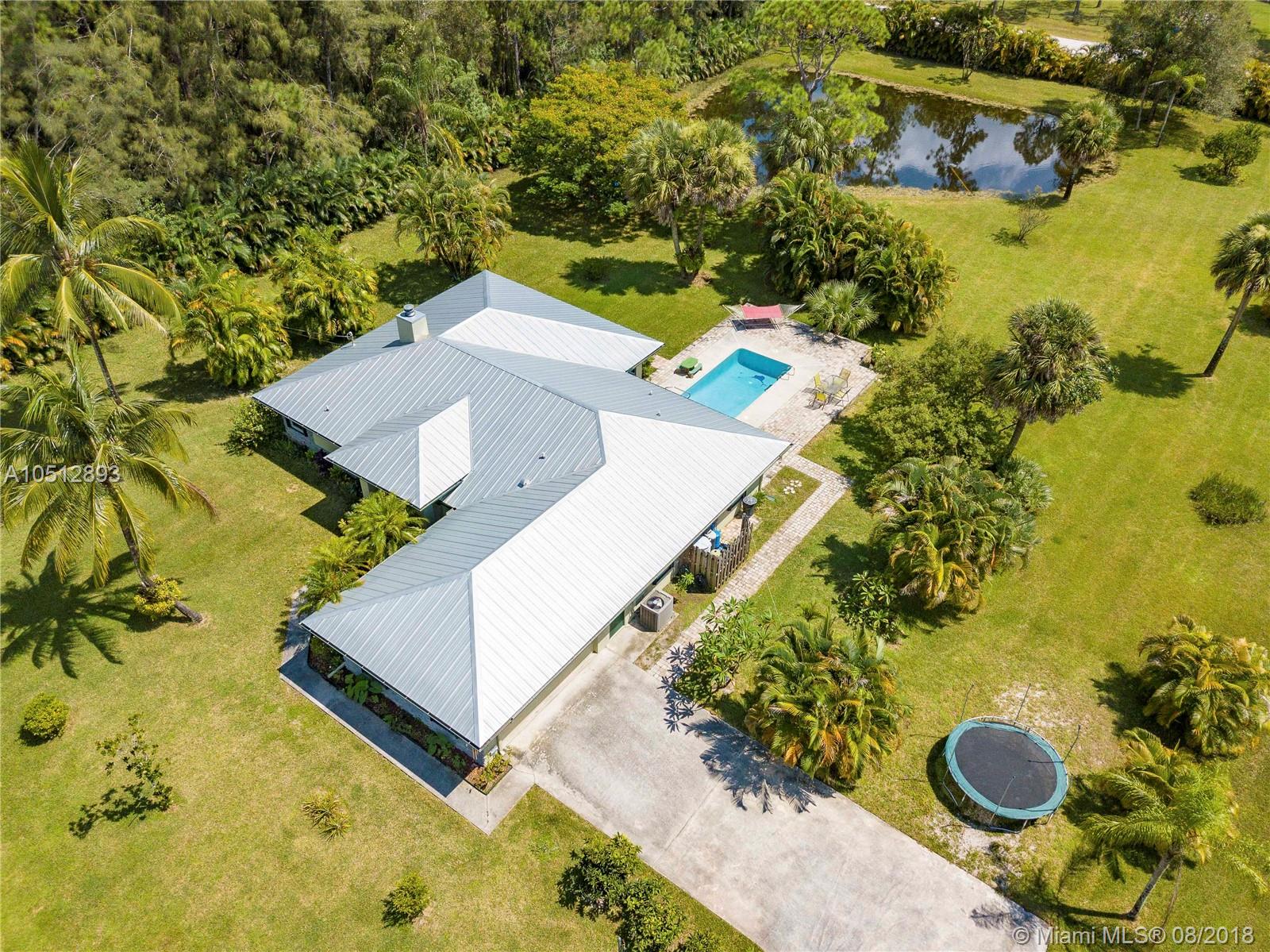 Beautiful custom built Ranch home 3 Bed.2 Bath on 2.38 acres double parcel lot, AC on perfect conditions ,completely fenced bordered with Areca Palms for total privacy, poured concrete construction, metal roof, large 24'X 22' car garage, complete accordion Shutters, exterior upgrades, central vacuum, heated pool, Stanley steel appliances, special waterproof laminated floor, new water heater, Wood burning fireplace, screened and covered rear patio with lake view, gated access from rear and front side, large storage shed.