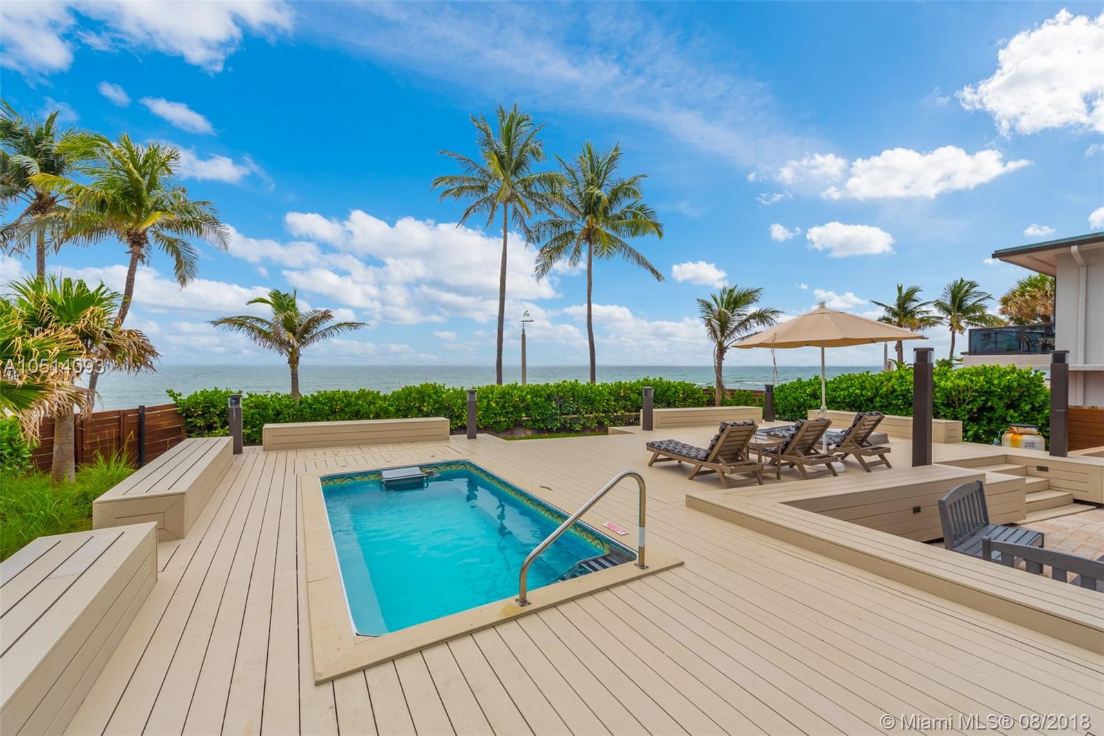 This newly constructed oceanfront home sits upon 62 ft of direct beach access . Top of the line finishes, european style chef’s kitchen and an entertainers dream deck makes this an oceanfront gem. Located in the quiet section of North Hollywood Beach, this 4 bedroom, 4 bathroom double lot can serve as both a family home or a vacation rental.