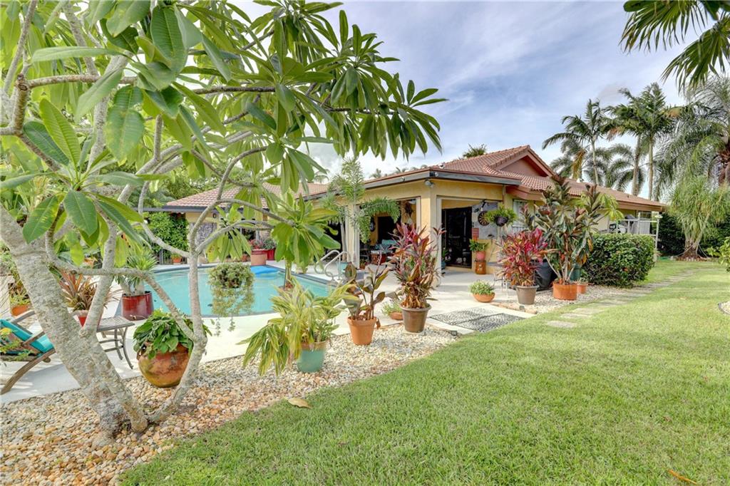 One story home with spectacular lake view with dock for fishing or just enjoying the sunsets! No HOA. Large Lanai & gorgeous pool area. Fenced in area for dogs. Fully Hurricane shuttered. Updated kitchen with wood floors. Volume ceilings, Split floor plan with large master suite & large bonus room. Newer roof 2011.