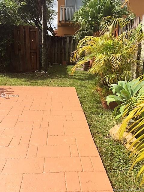 Corner unit Townhouse, single story (no stairs), 1,245 Sq.Ft, 3 bedrooms, 2 bathrooms, tile floors, kitchen with dining counter, family/dining room, 1 car garage converted to a room, but wall could be easily removed. Stackable Washer/Dryer. Dishwasher is not operable. Spacious fenced backyard with door to access back street/guess parking. Removable hurricane shutters. Lots of parking space close to the unit. Located in quiet area, closed to schools, shopping centers and easy access to I-75 and Palmetto Expressway.