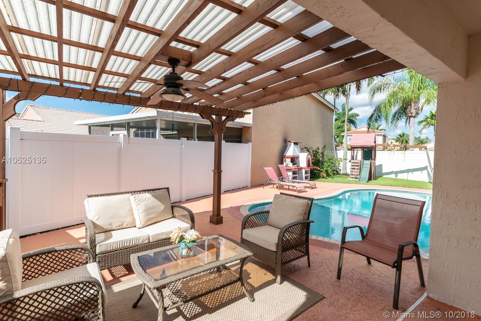You’ll absolutely love this charming 2-story home and it’s priced for a quick sale. It’s contemporary design that is completely awe-inspiring, filled with captivating decor and elegance. This lovely home includes 4 BR, 2.5 BA, and a custom-made kitchen with stainless steel appliances, and a very stylish backslash adding a touch of luxury to the kitchen. The kitchen also includes a chef’s island overlooking the pool area and kid’s playground. The interior of the home, as well as the exterior, is absolutely stunning. The interior of the home includes tiled floors downstairs and Italian wood floors upstairs, as well as in the garage that has been converted and completely remodeled to be used as an extra room. Includes oven fire pizza and newer A/C.