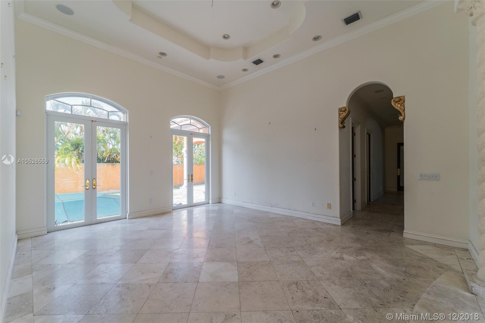 Beautiful custom built home with pillars and marble floors throughout in Gated community. 4 bedroom and 4 bathroom located on corner lot. Amazing outdoor space with covered lanai, in ground pool, cabana, and a fenced in backyard. Volume Ceilings, Spacious kitchen with marble counter tops, separate dining, family rooms and wine cellar. This is a must see must buy home. Come take a look today.