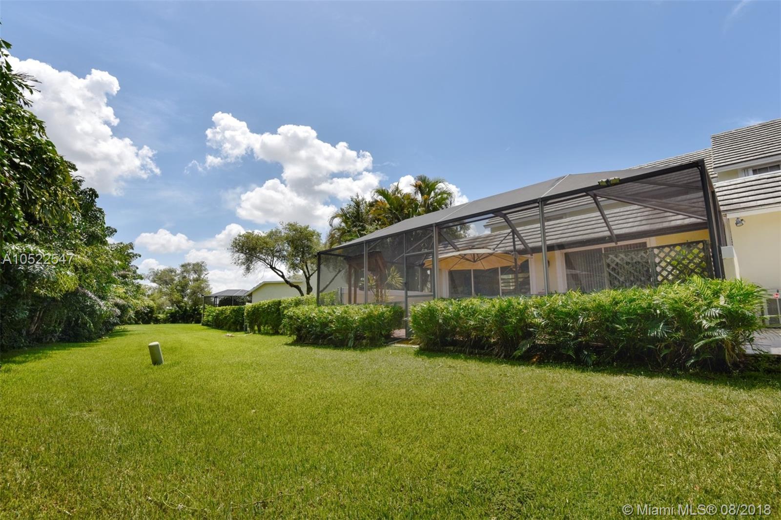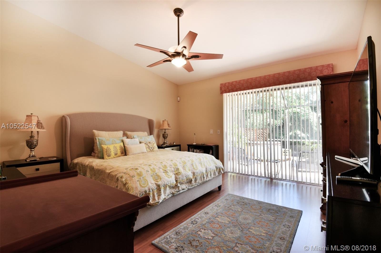 Beautiful 3 bedrooms, 2,5 bathrooms corner townhouse in the prestigious gated community of Doral Woods. Large Master Bedroom in first floor with walking closet and large bathroom.White natural stone tile french pattern floor in first floor, laminated wood floor upstairs and Master BR.This house offers a lot of Natural light and views from every space!Great Kitchen with breakfast area facing porch & inside garden, screened backyard patio with Hot Tub and golf course backyard, 1 car garage + 2 more outside, electric rolling hurricane shutters and accordion shutters upstairs. Doral woods offers 24 hrs security guard, club house, pool and playground.Great Location in the heart of Doral Park, A rating schools, near malls, restaurants, supermarkets, expressways, Miami Airport and so much more.