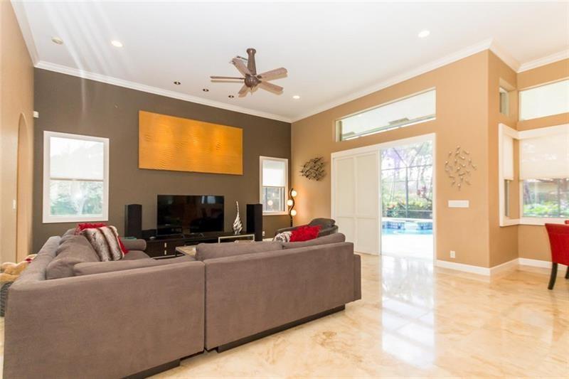 Priced $26,000 under appraised value. Well maintained 4/3 plus office/Den,3 car garage pool home on builders acre. Home features a triple split floor plan,oversized master bedroom w/2 walk-in closets w/custom floor to ceiling built-in cabinetry.Volume ceilings thru-out home with crown molding & LED recessed lighting. Living room features coffered ceilings.Kitchen has wood cabinets,granite countertops, stainless appliances,eat-in kitchen. Screened salt water and heated pool. Accordion shutters. Move in ready home.