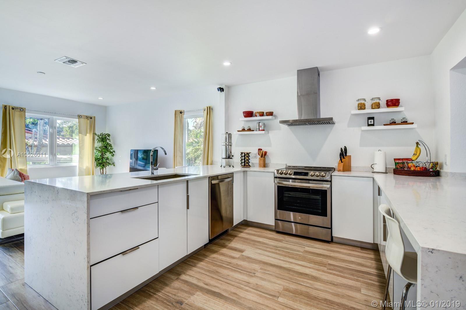 Completely remodeled home in Coral Gables perfect for entertaining. Guests can enjoy the open floorplan and serene outdoor space for large gatherings or special occasions. The house has it all, and is move-in ready... new roof, nest thermostat, new AC, italian kitchen cabinets, new plumbing, new electrical, impact windows and doors, parking pavers, sprinklers, smart keypad alarm with Ring & cameras. All done with permits. Attention to detail is evident throughout including a half bath for guests. Make your oasis the master suite which includes a gorgeous master closet and spa-like bathroom (smart toilet, dual shower & dual sinks). It's a dream home with room for a pool.