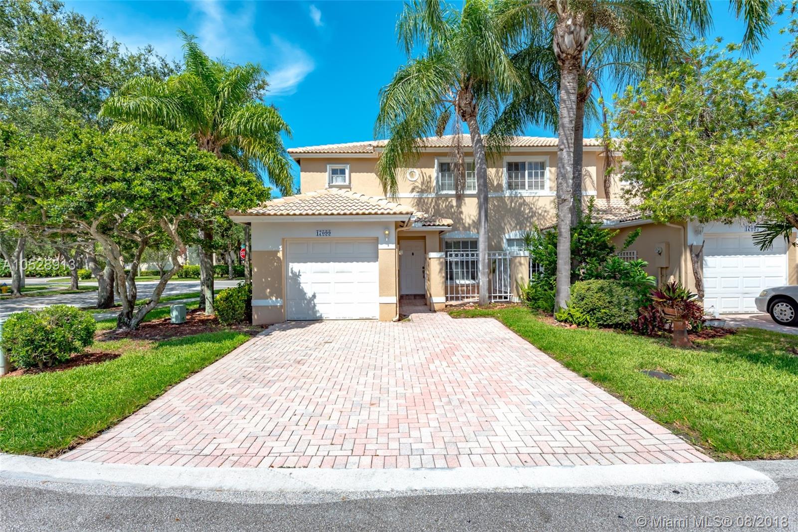 Great 2 bedrooms, 2 .5 bathrooms corner unit townhouse in the gated community of Pembroke Isles. Featuring; 2 car parking driveway, neutral tile in all living areas, new engineered wood floors in stairs and bedrooms, 1 car garage (part of the garage was converted in to a playroom), remodeled kitchen with stainless steel refrigerator, rage/oven and microwave, full size washer and dryer, remodeled 1/2 bath and master bathroom, a/c unit 2016, accordion shutters. new water heater. Excellent school and community.