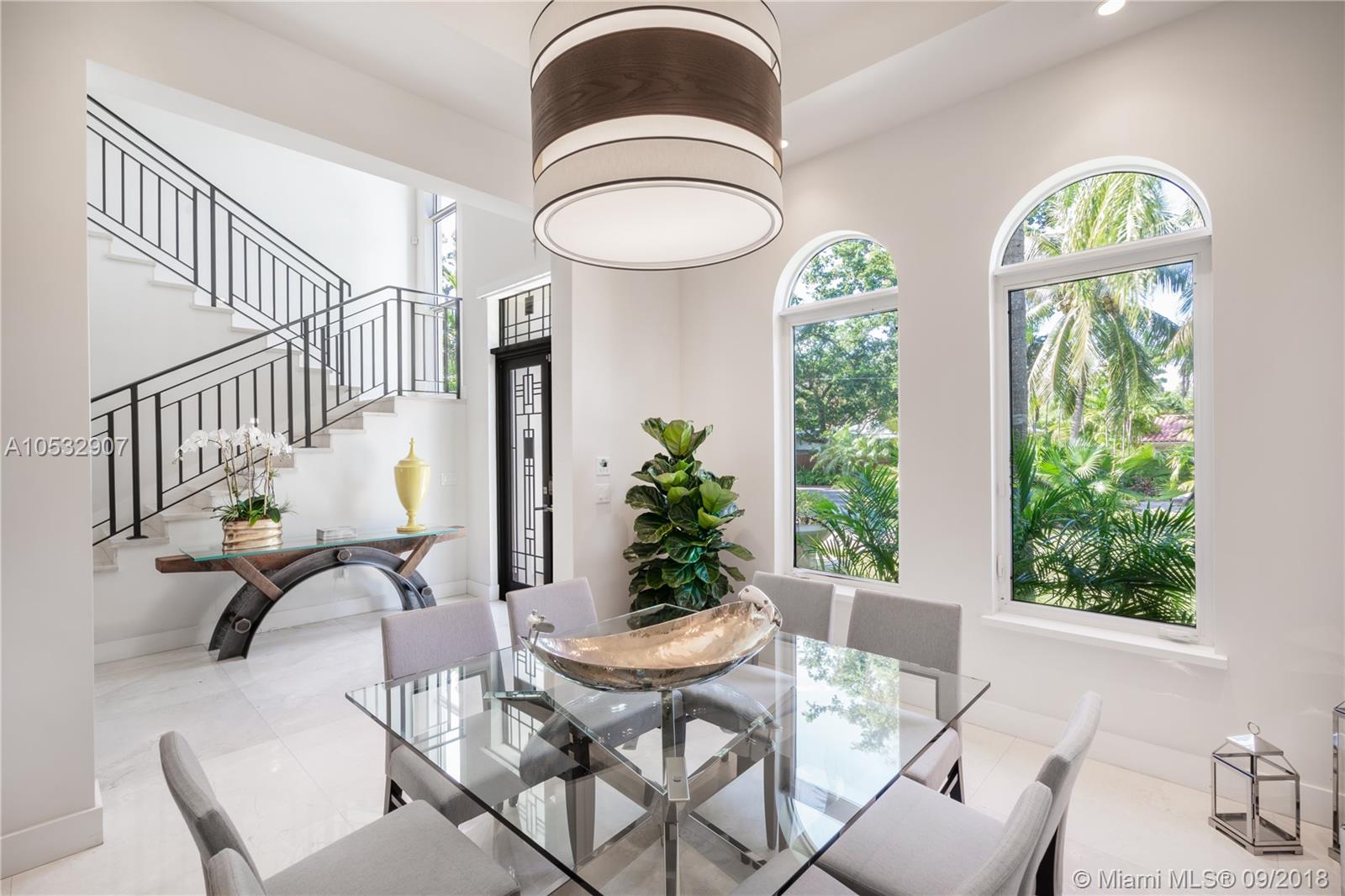 A tropical Coconut Grove oasis, made for entertaining. Newly built in 2013, this stunning pool home features a gourmet kitchen, open to Family room, Marble floors on first floor, Formal Dining room, flex space currently used as a billiard room, bedroom on first floor with adjacent bathroom which acts as cabana bathroom with access to your private swimming pool. Upstairs, the master suite has a large walk-in closet and luxurious spa-like bathroom retreat. The other 3 bedrooms are graciously sized and outfitted with walk-in closets and wood floors in all bedrooms. The backyard is private and serene, with a lit pergola and summer kitchen. 2-car garage.