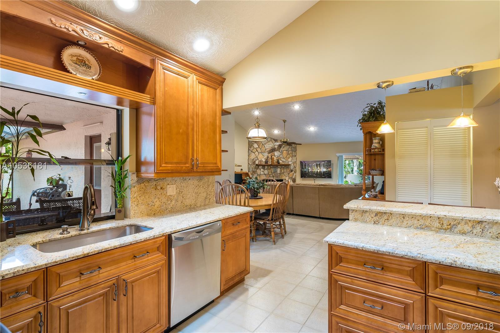 Rarely available Arabian model in Davie Lake Estates! BIG 3/2 loaded with features & over 2000 sf of living area. Remodeled kitchen with high end cabinetry & counters. Updated bathrooms. Meticulous condition with flowing floor-plan. Family room & breakfast area off kitchen for the "open concept" that is popular. Large living room with formal dining area. Working fireplace for cozy evenings. Huge screened patio with gorgeous & peaceful lake view. Secondary patio sits to the side of family room..perfect for morning coffee. 2006 S-tile roof, AC replaced in 2012. Hurricane protection & rated garage door. Lots of extra storage in attic with flooring and pull down ladder. Huge lot with plenty of room for pool, garden & pets. THE BEST SCHOOLS. (Silver Ridge, Pioneer & Cooper City High)
