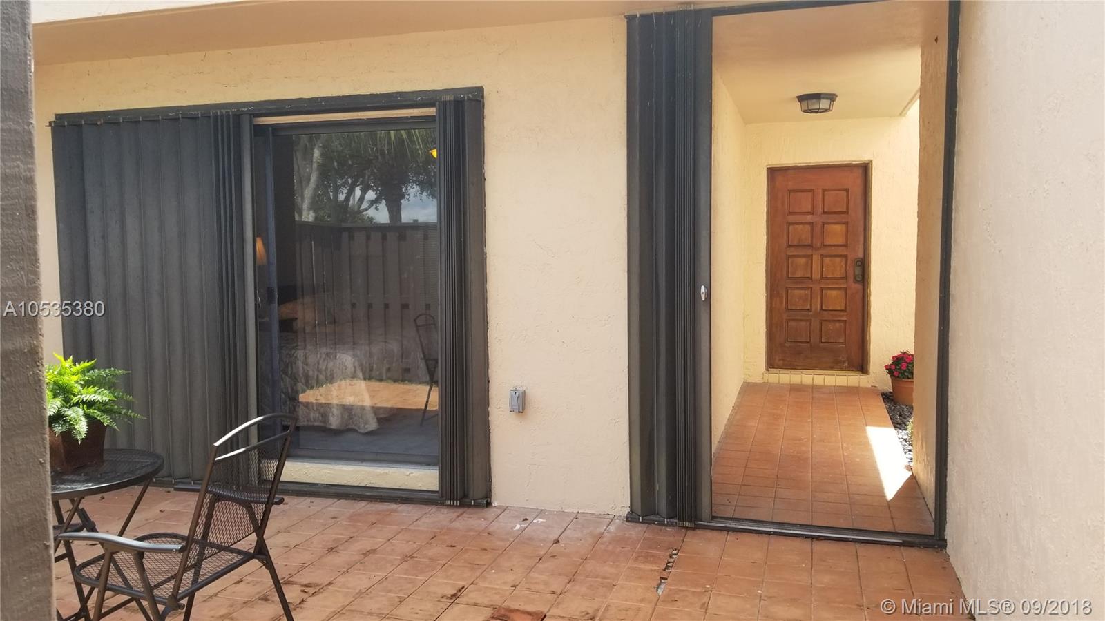Big 1 story townhome on Golf Course, Country Club of Miami. Lush green spacious view. 2 large Bdrms/2 Bths, 2 car gar, corner unit. Master Bdrm & baths renovated, new vanities (dual sinks master Bth) shower, toilets, mirrors. 2 Central AC's, new electric panel. Replaced tile roofs & flat roof under warranty. New tankless water heater, gate & fencing, covered porch w/newly tiled floor. Dues only $200/YEAR! Kitchen & LR floor need updating.