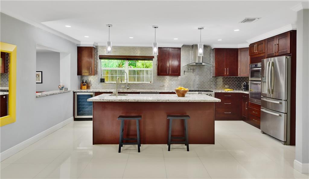 Come and experience this fresh clean & bright home with wide open spaces! Simply gorgeous! Nestled in a quiet neighborhood close to major roadways, beaches, airport and night life. House has been freshly painted inside and out with upgraded landscaping, new gas water heater, new floated ceiling w/upgraded LED lighting throughout, 24" porcelain tile flooring throughout, upgraded master bath, upgraded kitchen w/ built-in oven & microwave, wine cooler, 6 burner gas stove, Vivint home security system included! This 3/2 home is certainly one you and your family will enjoy for many years to come. French doors open off master to lovely patio for morning coffees and evening gatherings. The paver circular drive & car port offers plenty of room for parking. NEW AC! Room 4 pool, proposal available.