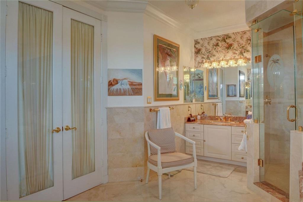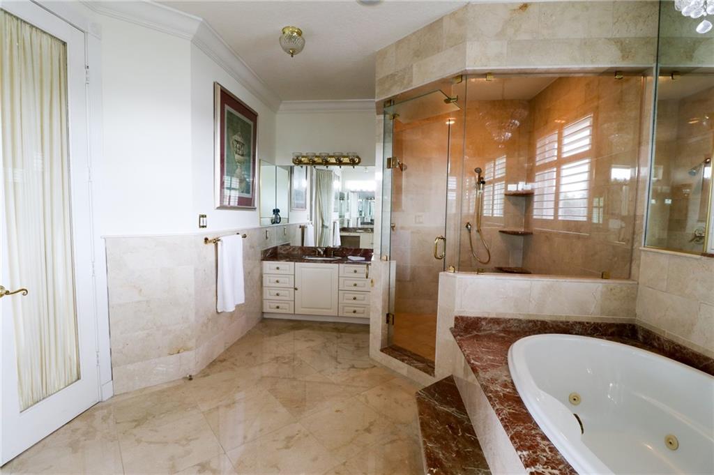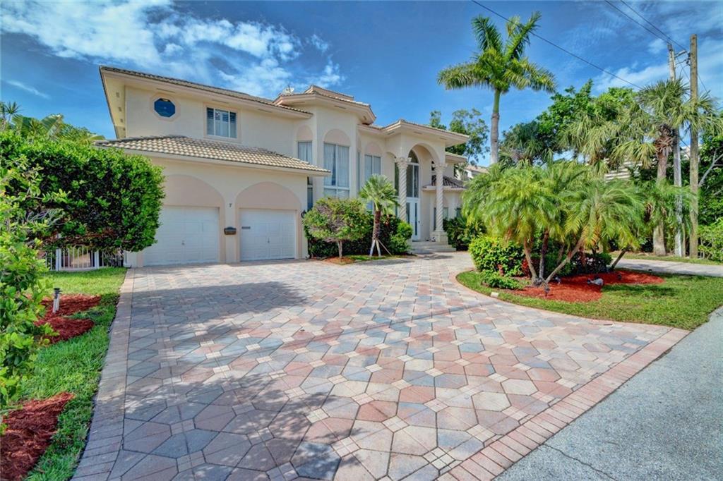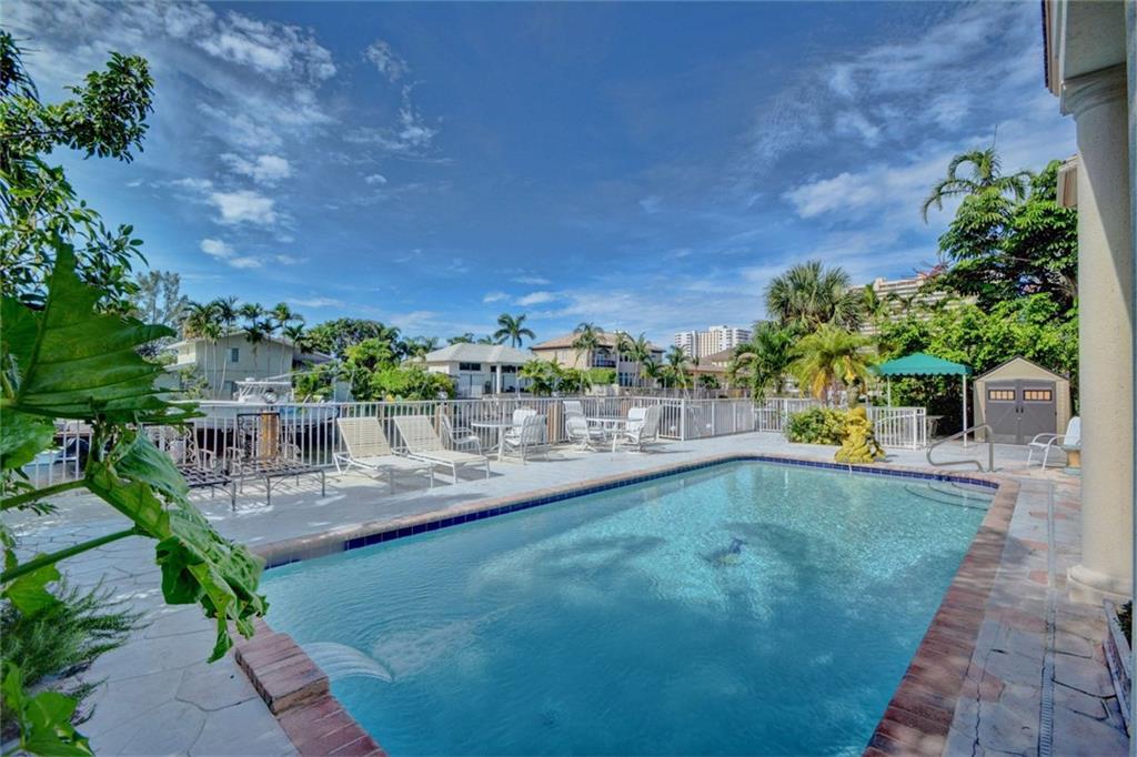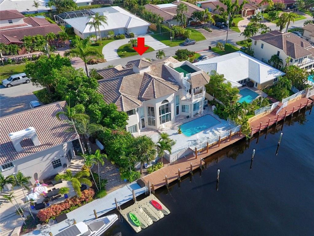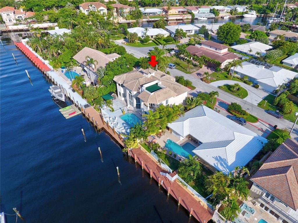 Stunning waterfront home located in the beautiful gated Bermuda Riviera neighborhood of Fort Lauderdale Beach. The extra wide protected canal and large dock area is perfect for boaters. Walk to the beach, shopping and dining from this incredible location. The open floor plan with dramatic 2 story windows provides for amazing waterfront views throughout the house. Kitchen includes a walk-in pantry, breakfast bar and casual dining space in addition to the formal dining area. The master suite boasts a private balcony with pool and waterfront views, his/her closets and sink areas, large shower and luxury jetted tub. Split bedroom plan. Rooftop terrace with unbelievable views. Den on first floor could be office or 4th bedroom. Large back patio with heated pool overlooks the private waterfront.
