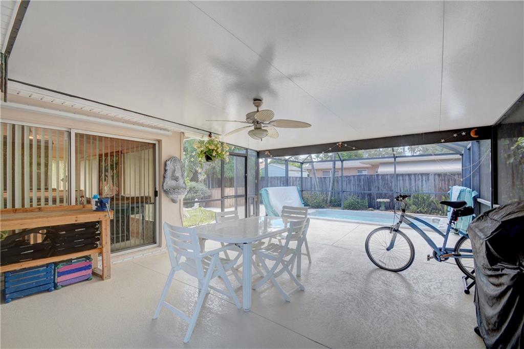 Originally a 3 bedroom, converted into a 2 so to make for a large master suite. This single family home shows great pride of ownership, and is just minutes from Downtown and I-95. Screened in patio in the backyard is perfect for watching the sunsets. Enjoy the pool/jacuzzi, as well as fenced in yard with shed. Master suite has TWO spacious walk-in closets and private on-suite bathroom. You'll love the big kitchen in the center of the home, which has plenty of storage, built-in organizers in every drawer and cabinet. *Bonus room can be used as third bedroom or office space. New tile and hardwood floors throughout the house. New pool pump. Roof recoated and resealed in 2018! Exterior of home just painted! Driveway recoated. Completely move in ready with full list of upgrades - call today!