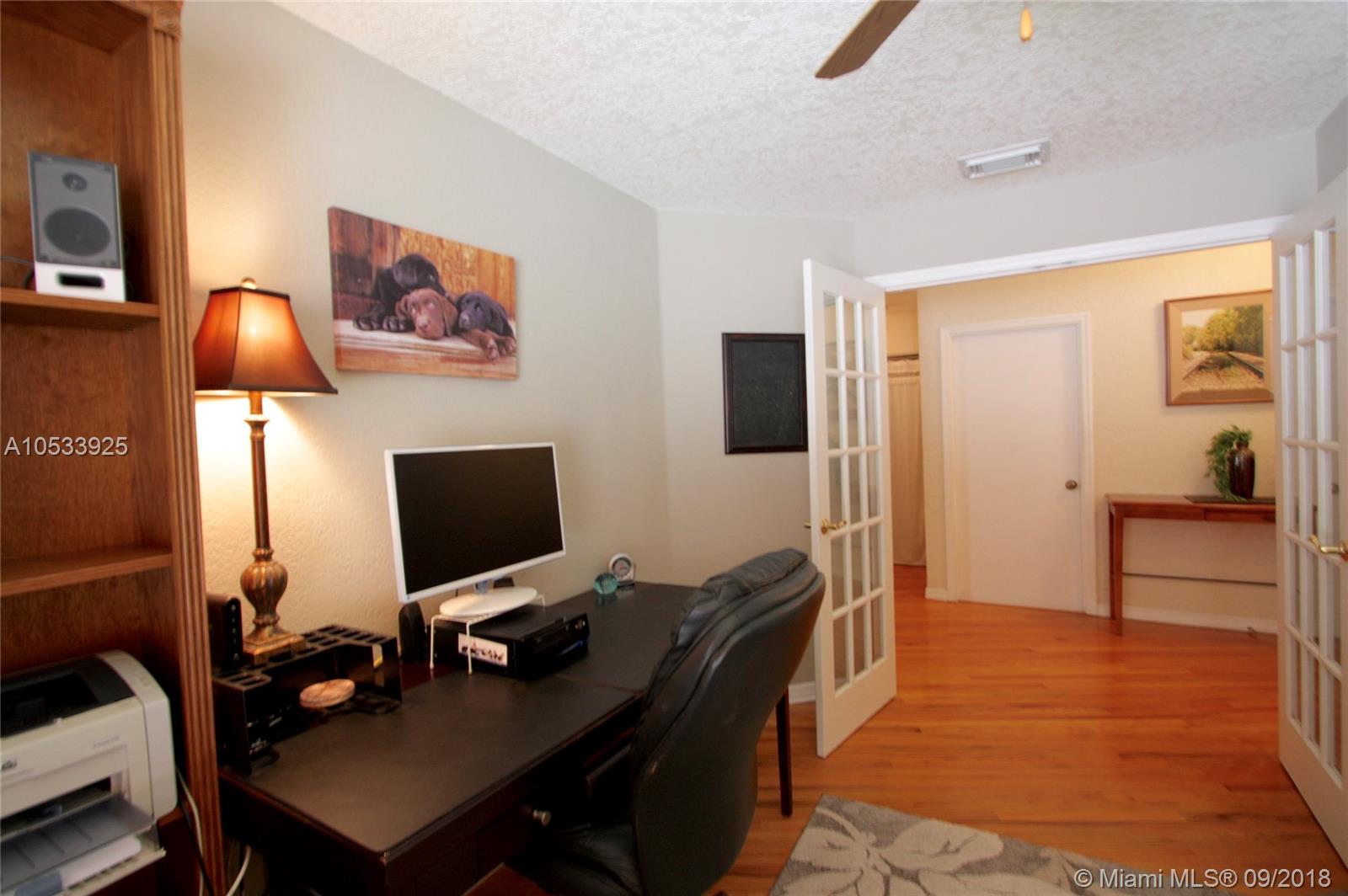 Waterfront villa in Davie - single story home with covered patio and great view of the lake! This three bedroom, two bath, one-car garage home feels very spacious with high ceilings in foyer, living/dining room, kitchen and master bedroom. Amazing custom kitchen has tall custom cabinets, granite counters, stainless steel appliances and breakfast bar. Beautiful wood floors. Great home for entertaining. Well maintained and beautifully upgraded. Ready to move in. Close to good schools and shopping. New roof in 2013. Full set of hurricane shutters . New hurricane resistant garage door.