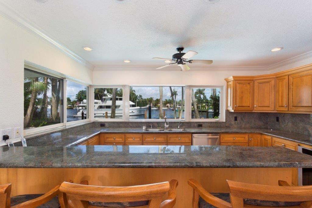 Tucked on a bend of the river, this rare estate captures an enchanting panoramic outlook on the winding waters and lush coastline centered on a tree-cloaked peninsula on the opposite shore. Mature shade trees and palms beautify the park-like grounds of this one-of-a-kind property on 85± feet of riverfront with a raised seawall and newer dock large enough for a 75±-foot yacht. Enlarged and renovated by noted Fort Lauderdale architect Arthur Bengochea, the traditional Florida-style residence opens to a riverfront loggia and sun-splashed pool terrace by tree-studded lawns with a tranquil fountain.