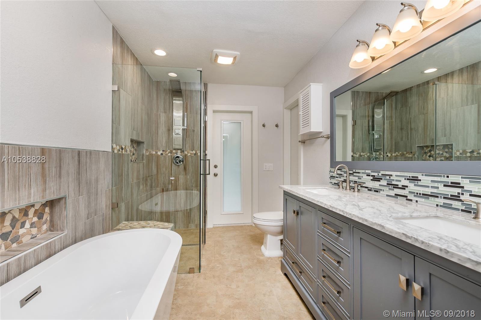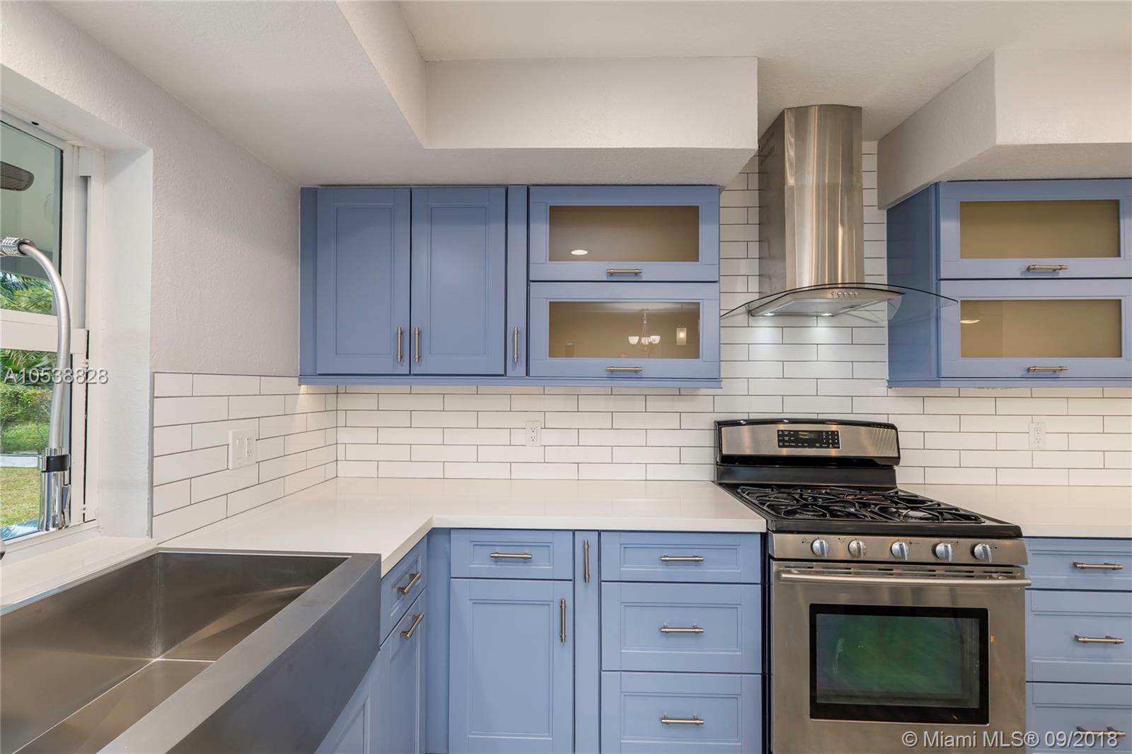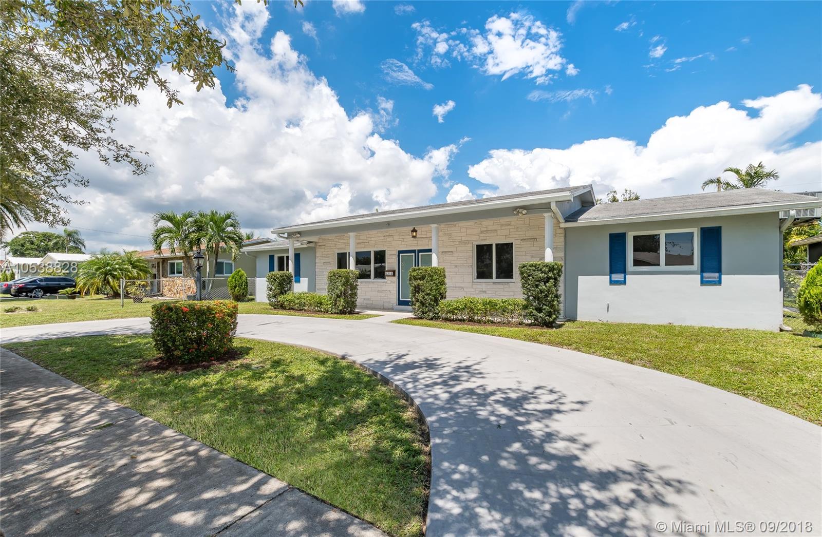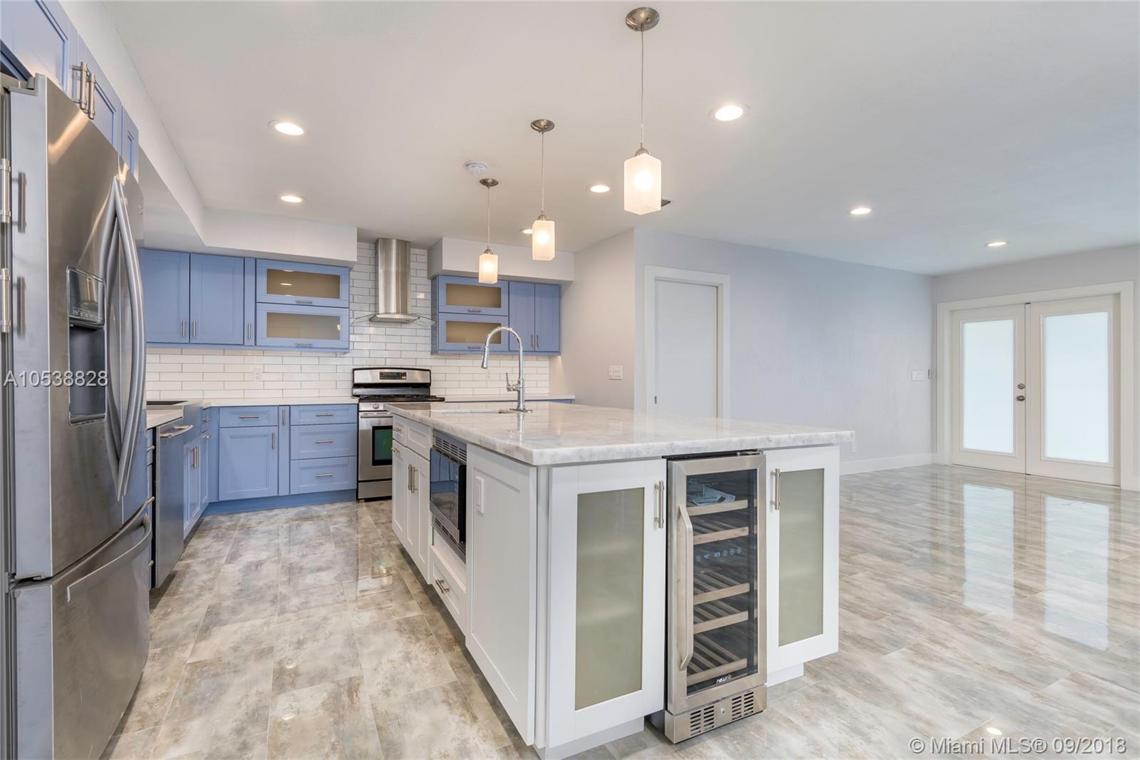 Gorgeous 4/2 Hollywood Hills home with NEWLY REMODELED EVERYTHING-bedrooms, bathrooms, living/dining, laundry, patio & kitchen. No details spared! Plus NEW HURRICANE PROOF WINDOWS & DOORS. Amazing open floor plan, great for family life & entertaining. 2 master bedrooms; 1 master on opposite side from other 3 bedrooms. Unique blue modern kitchen, white quartz counters, stainless steel appliances, gas stove & a large vivid stone-top center island with a separate sink, built-in microwave & wine cooler/bar area, plus front load washer & dryer in spacious laundry. Large fenced-in backyard with a beautiful mango & gardenia tree. Circular front driveway & alley access to 2nd rear driveway leading to garage. Excellent location; next to turnpike & a short drive to I-95.
